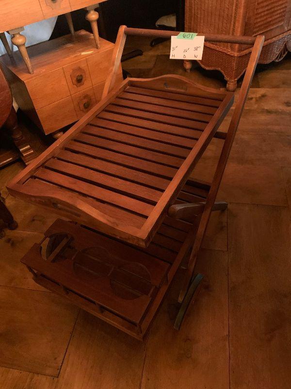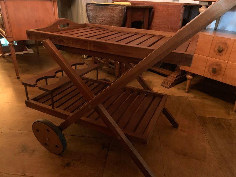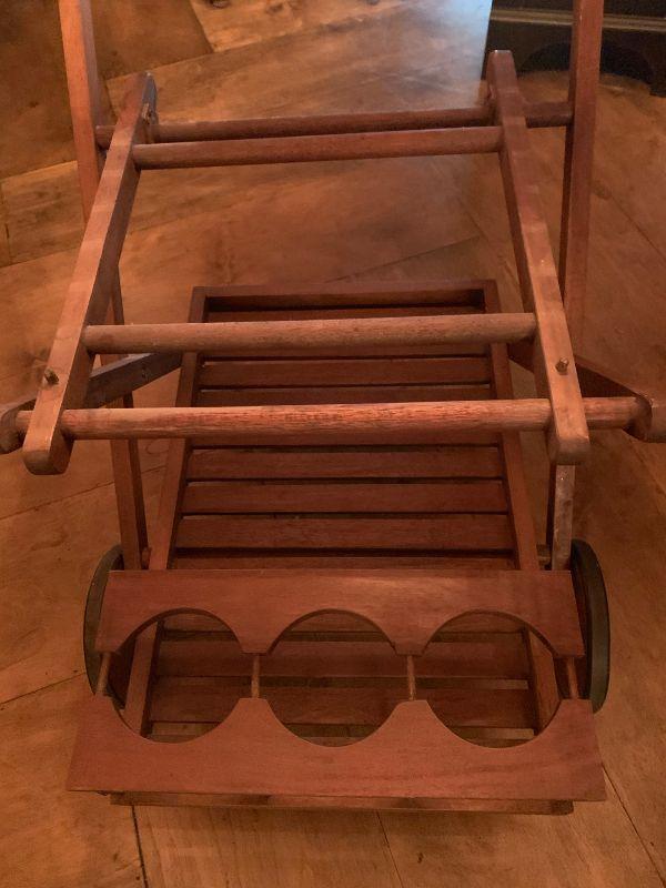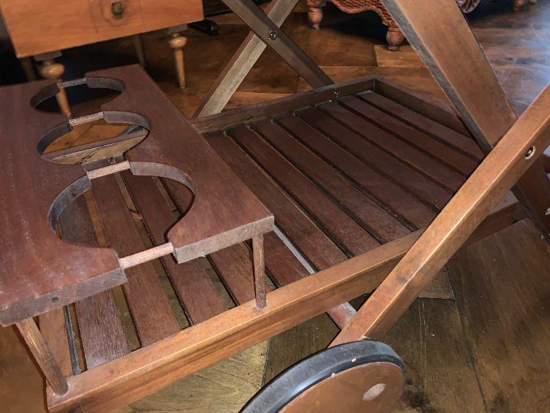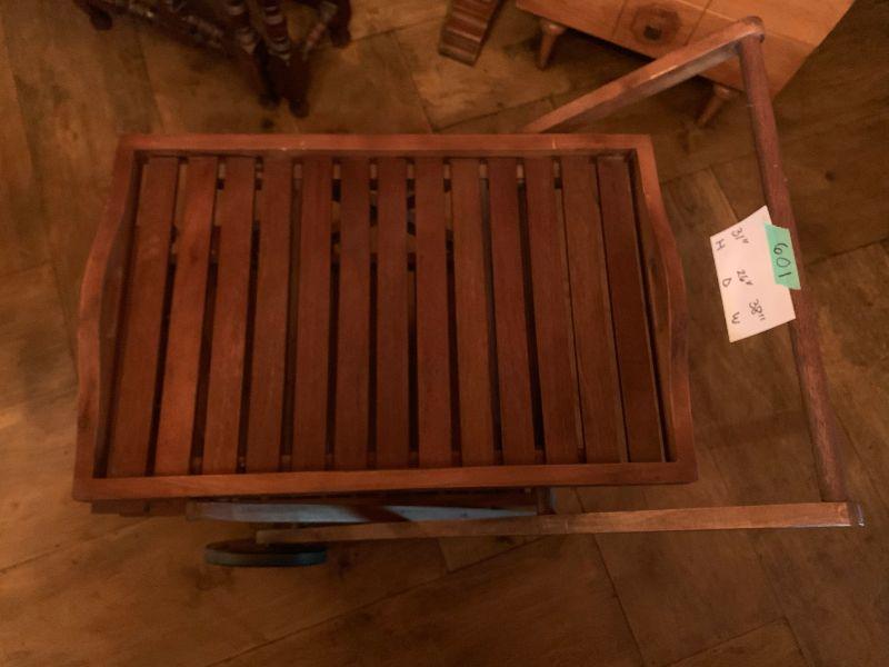 Serving Cart Wood on Wheels with removable top tray