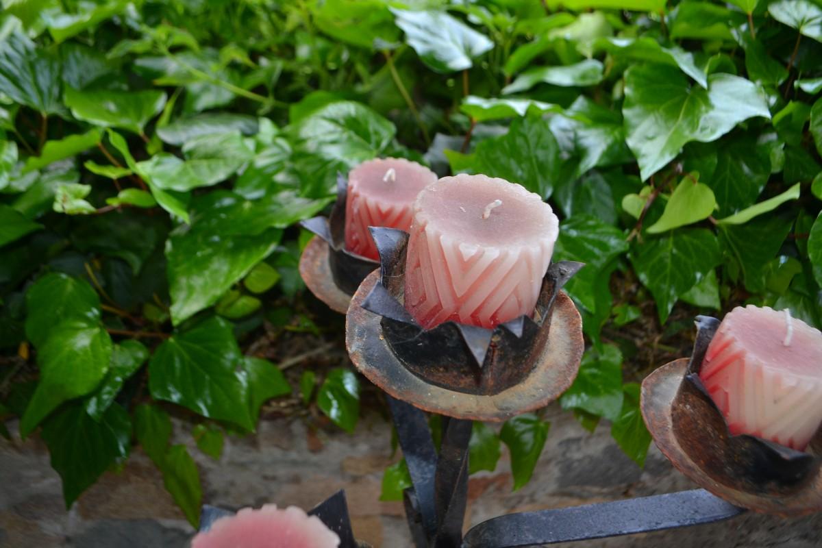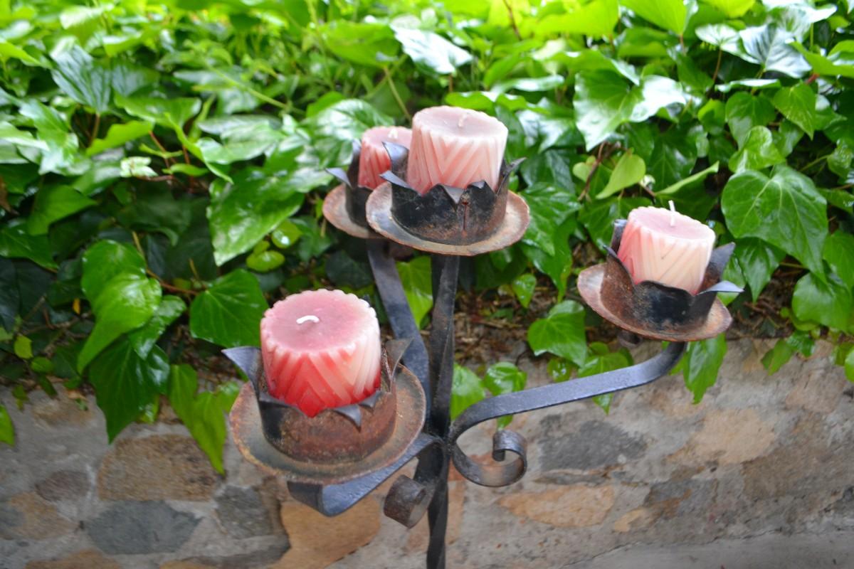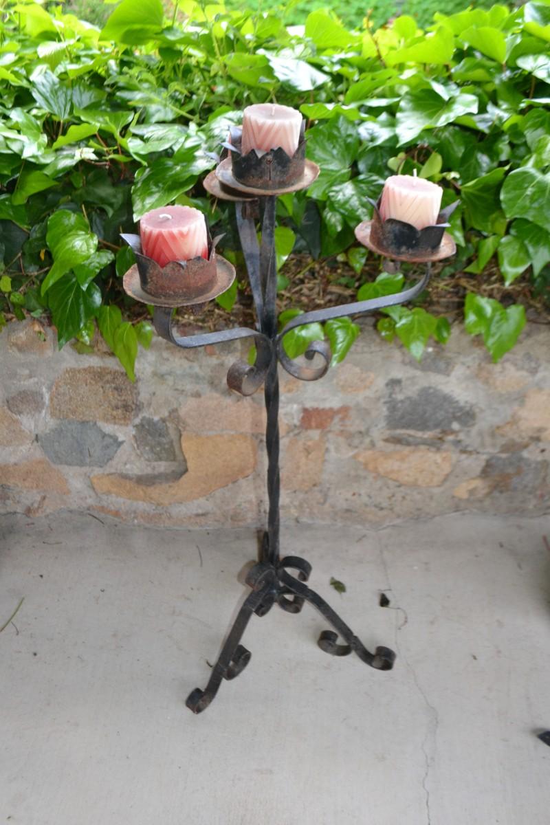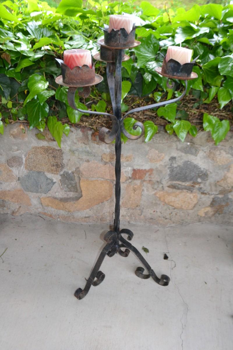 LOT 601. 41" TALL WROUGHT IRON CANDLE HOLDER