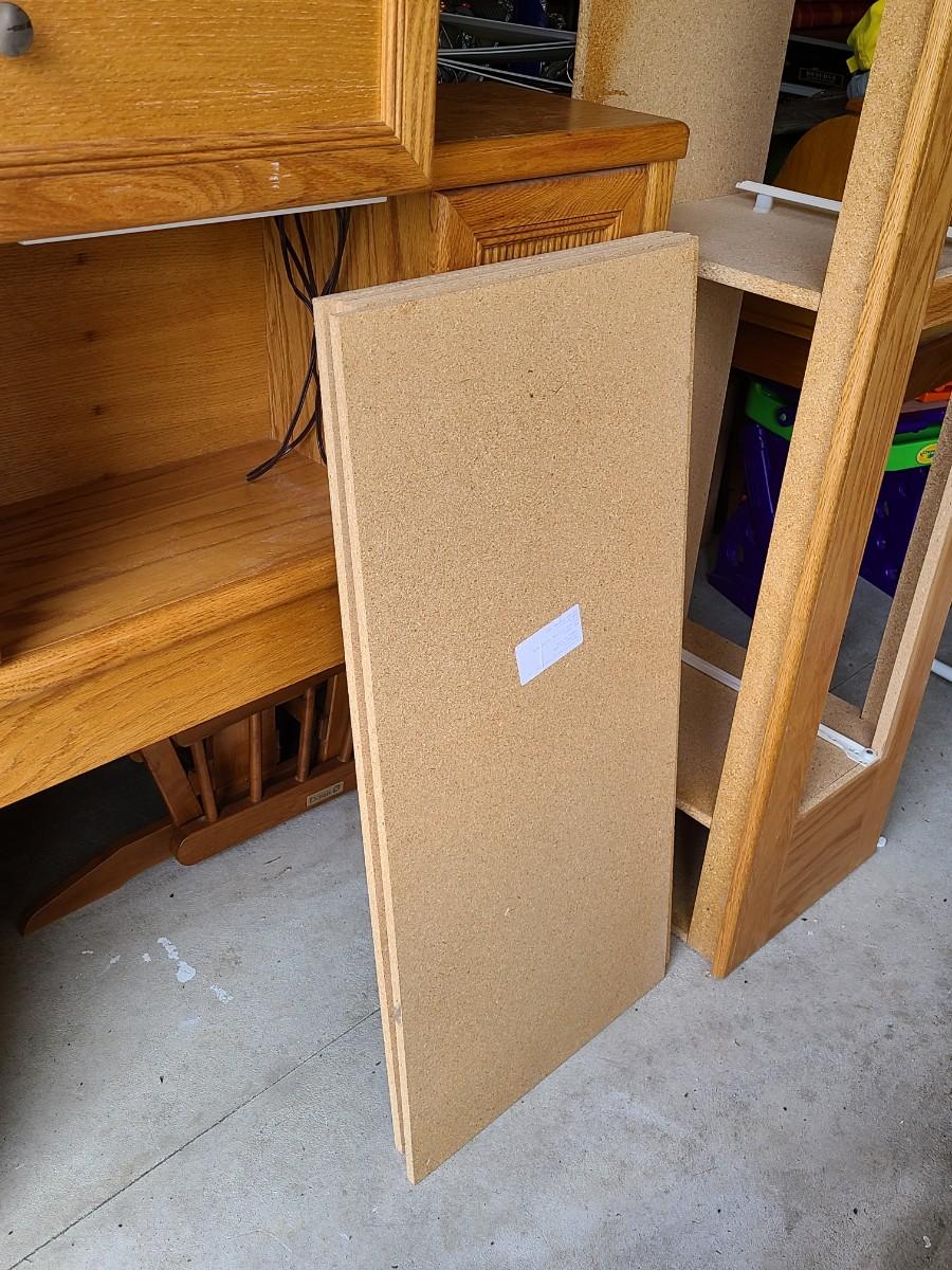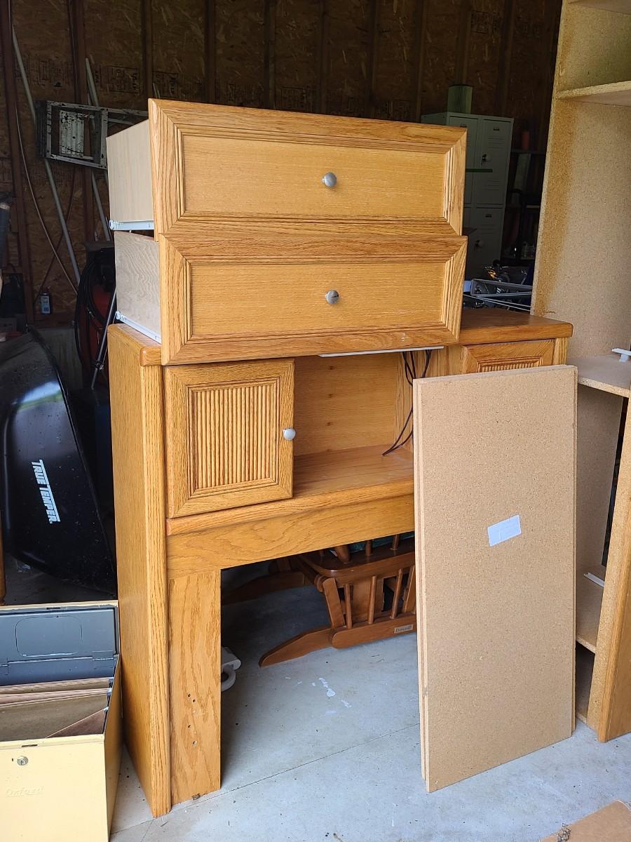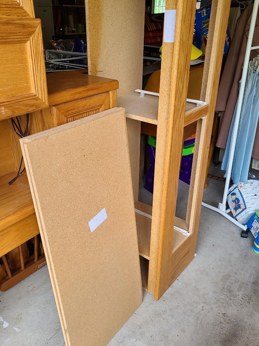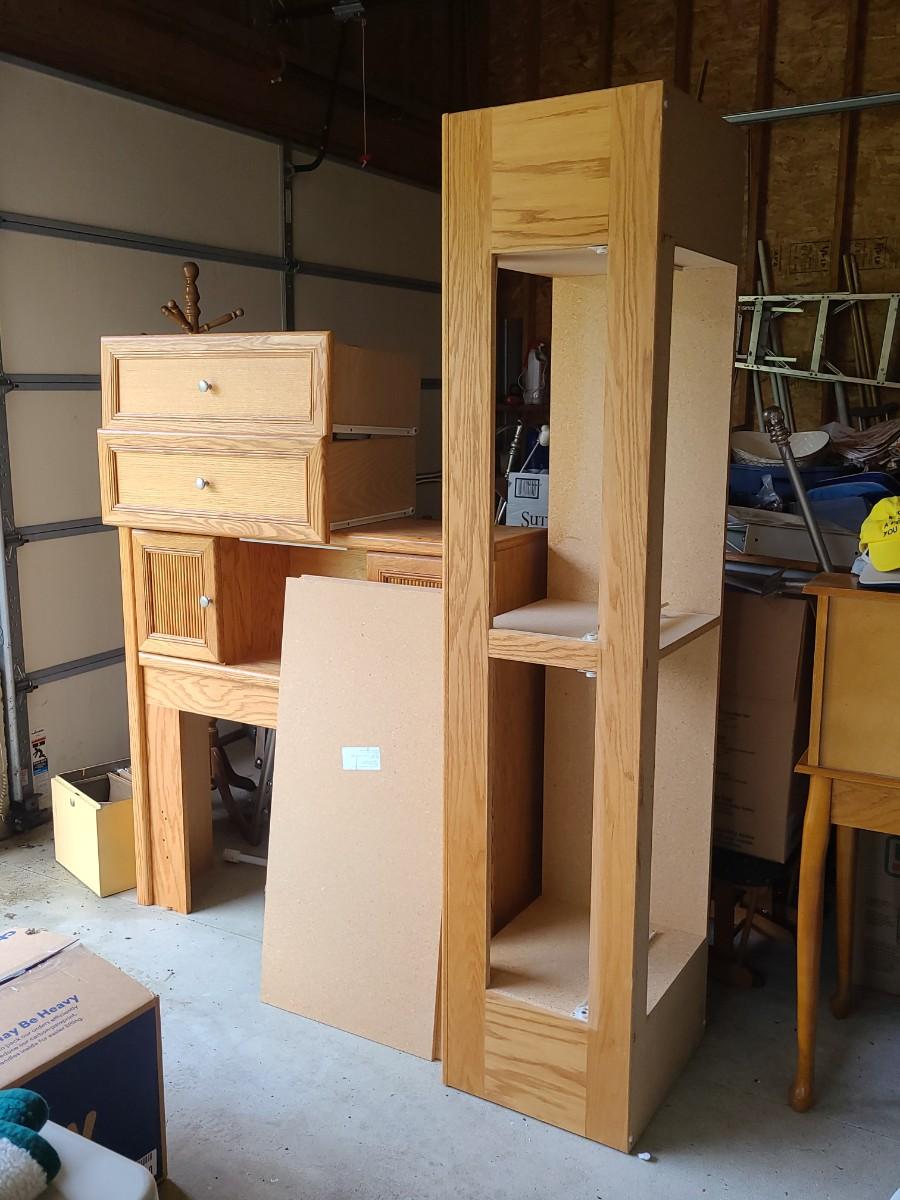 This is a solid piece of furniture and is functional as well as great design! Unisex oak/honey color. Has bookshelf/ shelf back, the platforms for bed so no bowstring needed, and drawers for underneath. Ready to load in your truck!