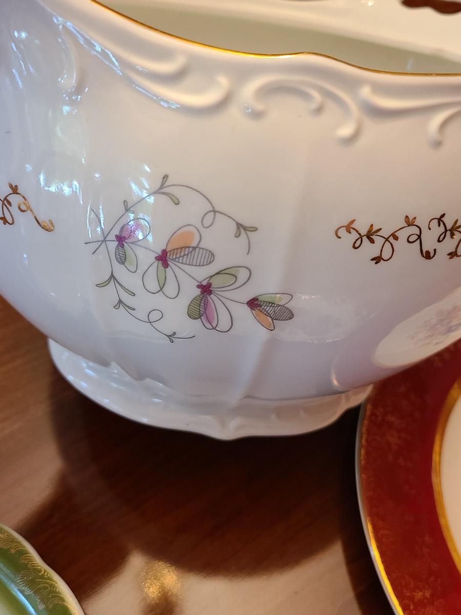 Lovely lot for service ware or home decor. Please see all pictures as they are the best representation of the items in the lot, the condition of the lot, and will show measurements if taken. If purchasing furniture you must be able to move yourself with your own help, and truck. This is located on the first floor.