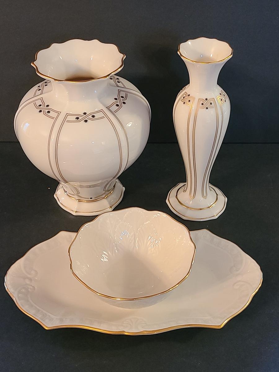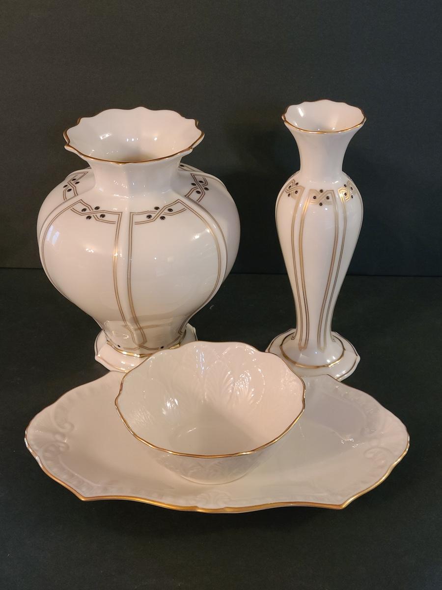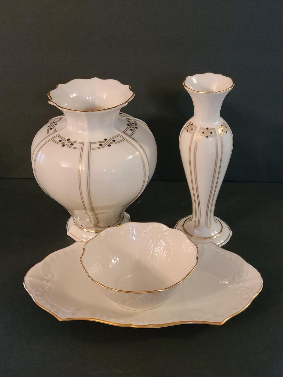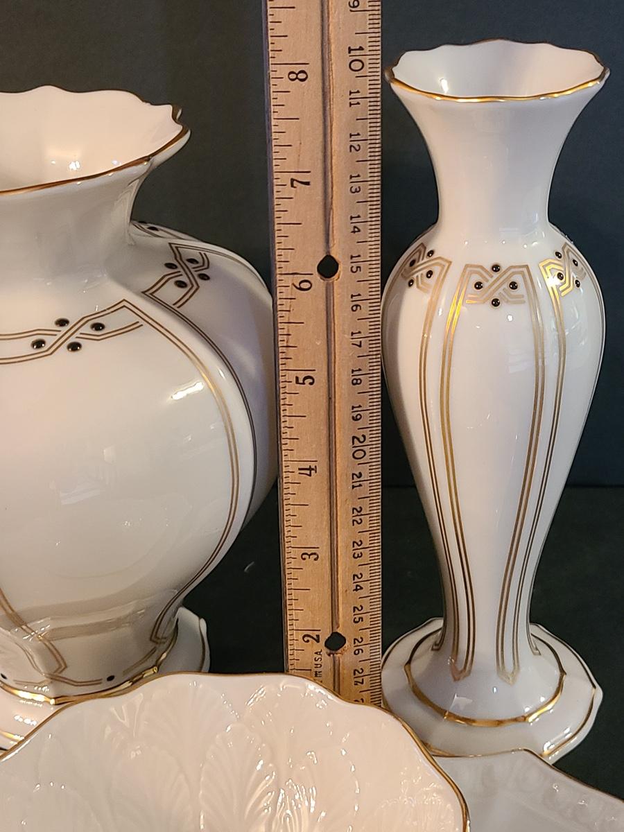 Lovely Lenox vases with accent trays and florals. Please see all pictures as they are the best representation of the items in the lot, the condition of the lot, and will show measurements if taken. If purchasing furniture you must be able to move yourself with your own help, and truck.