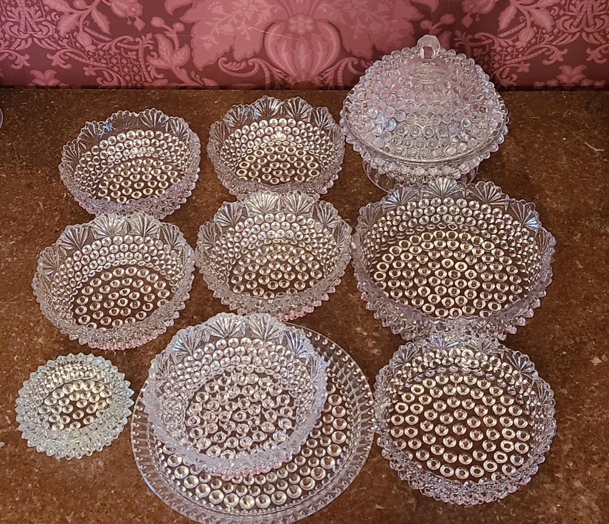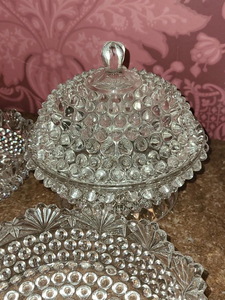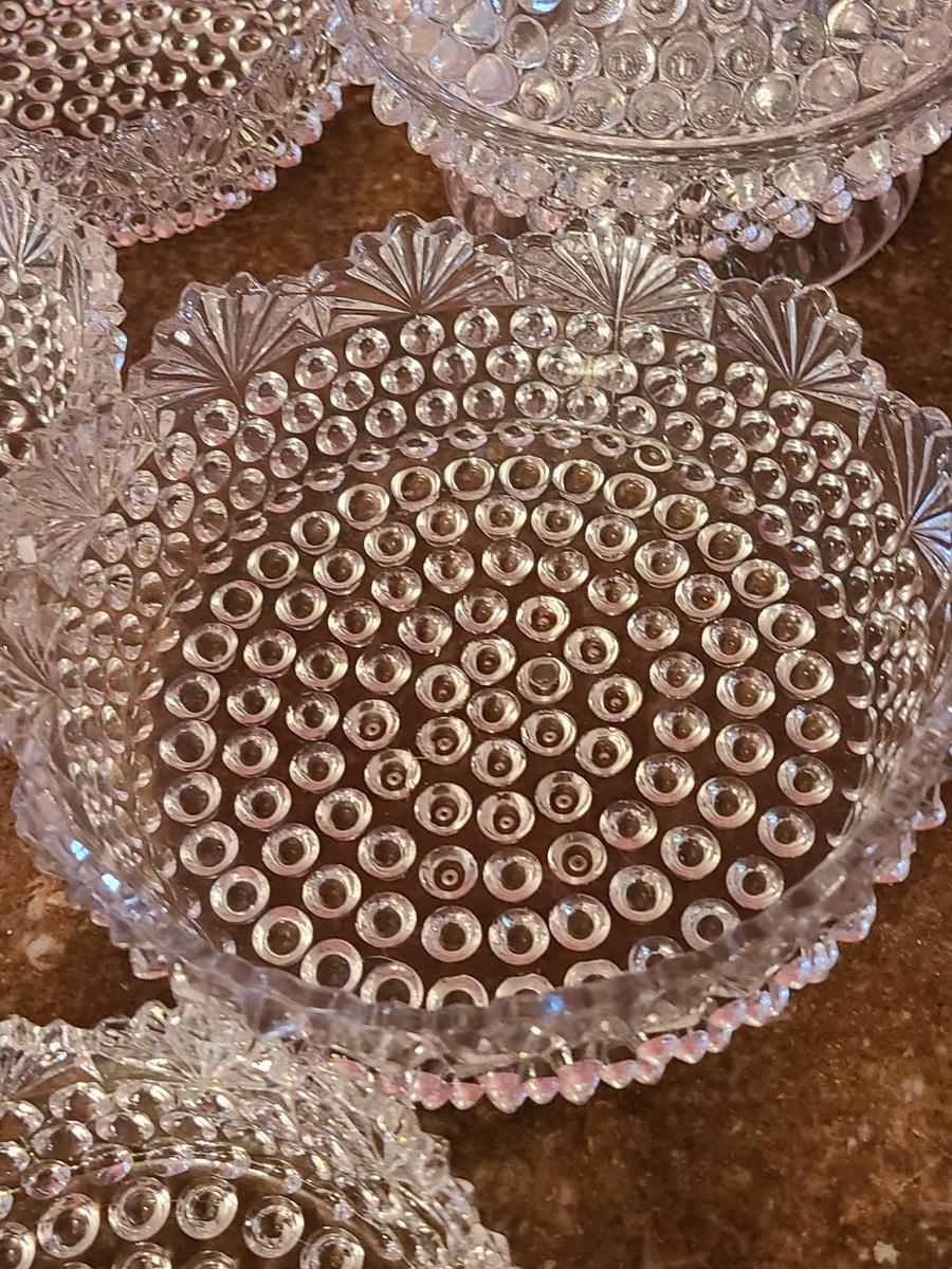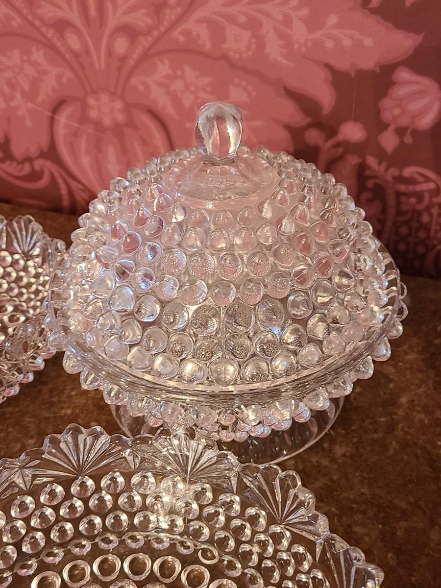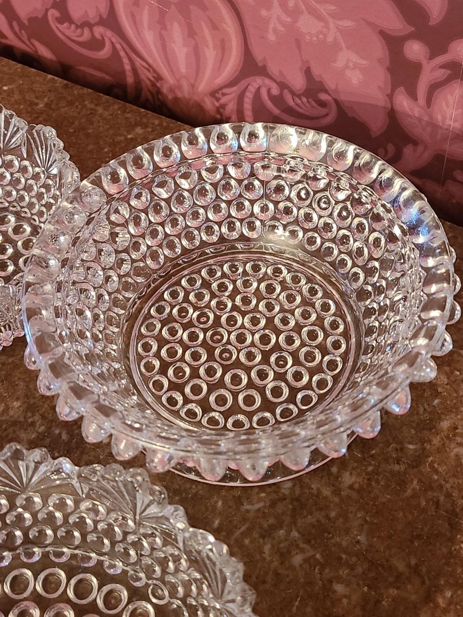 Lot 294: Vintage Hobnail Clear Candy Dish and Berry/Custard Bowls