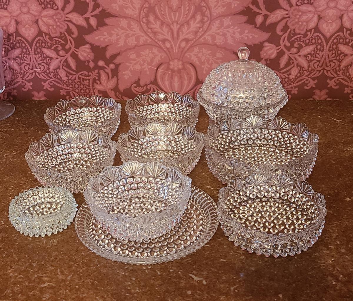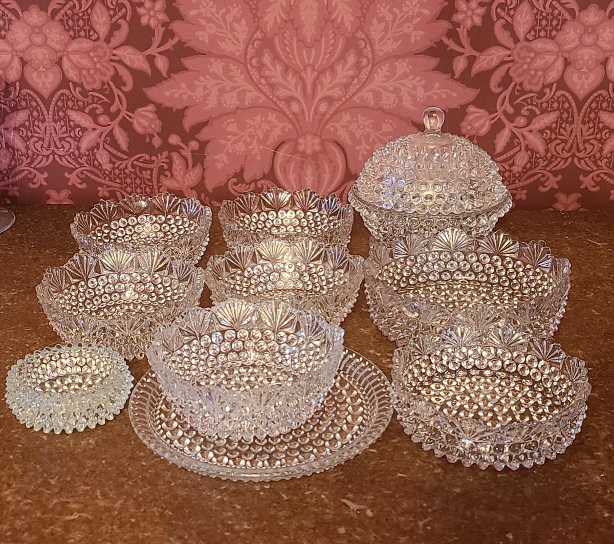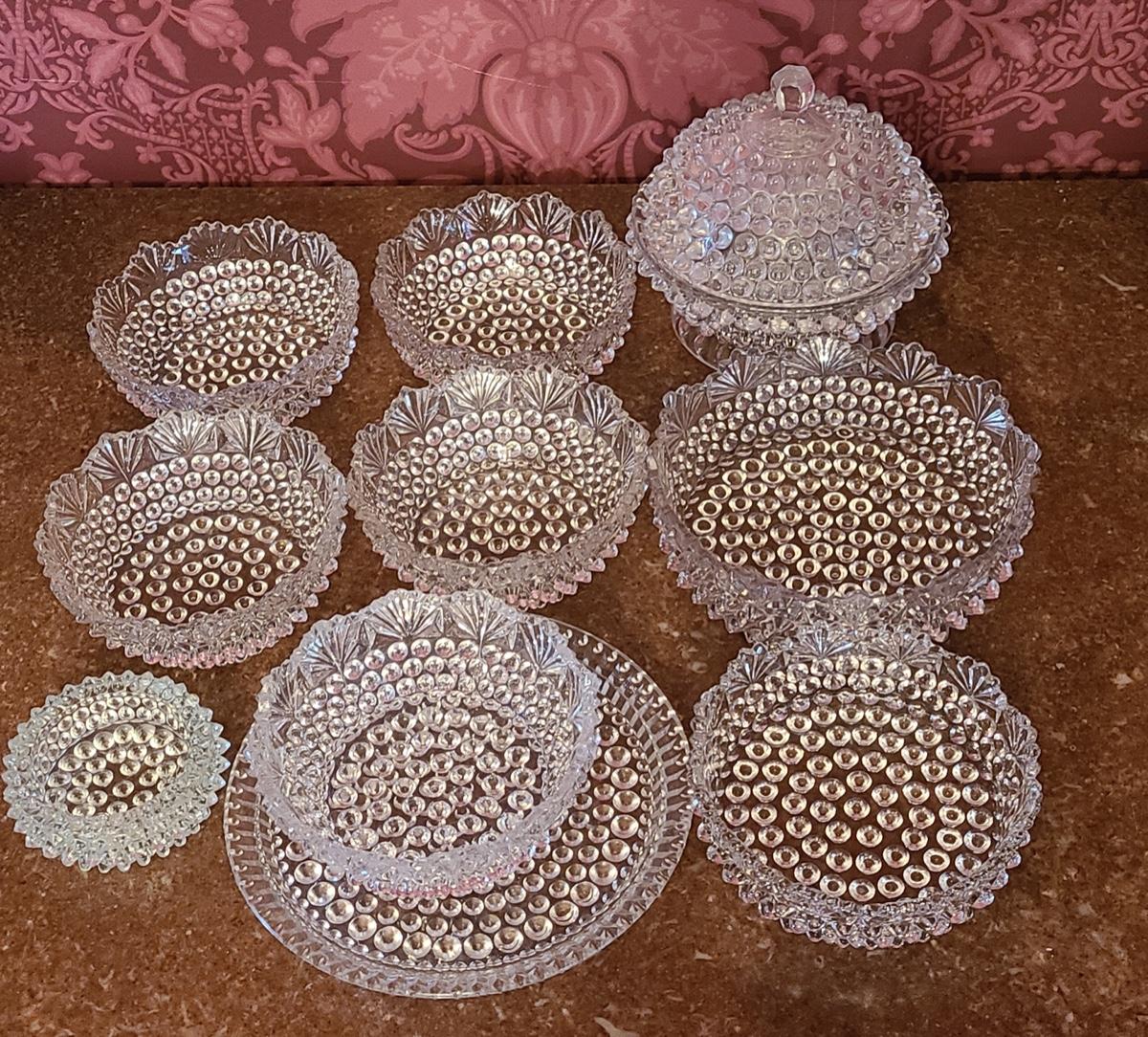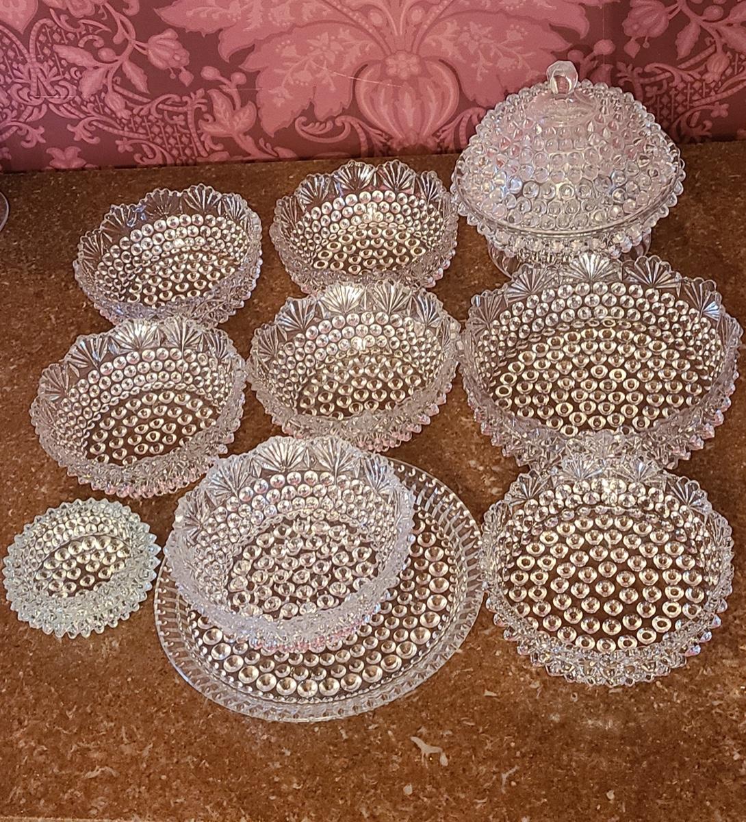Lot 294: Vintage Hobnail Clear Candy Dish and Berry/Custard Bowls