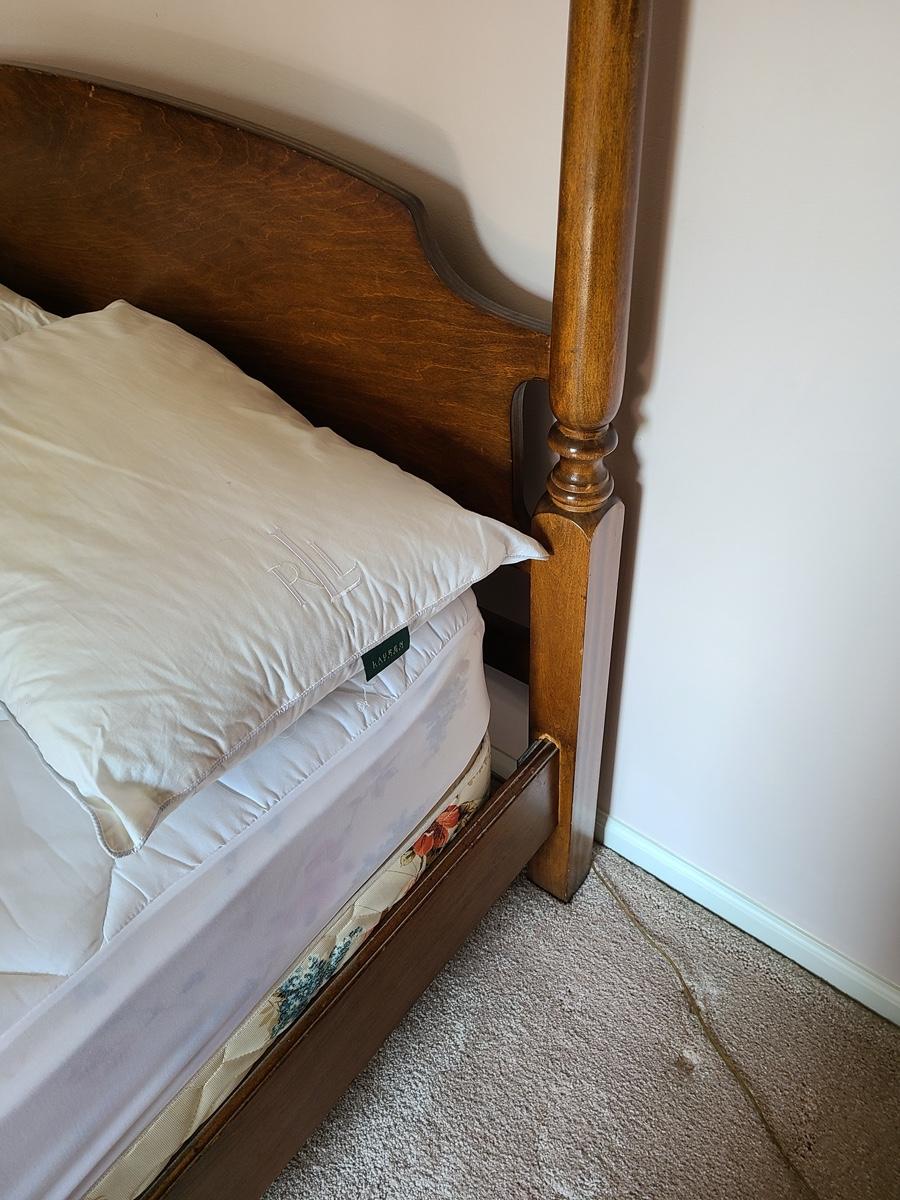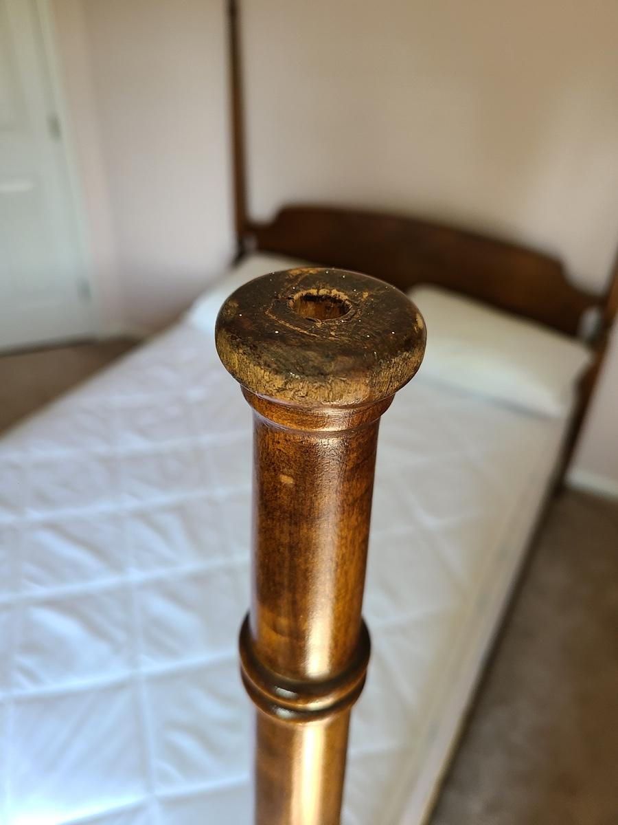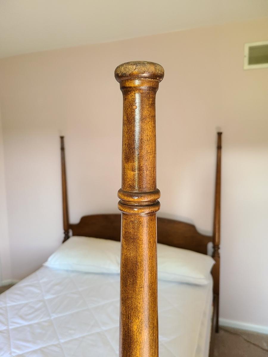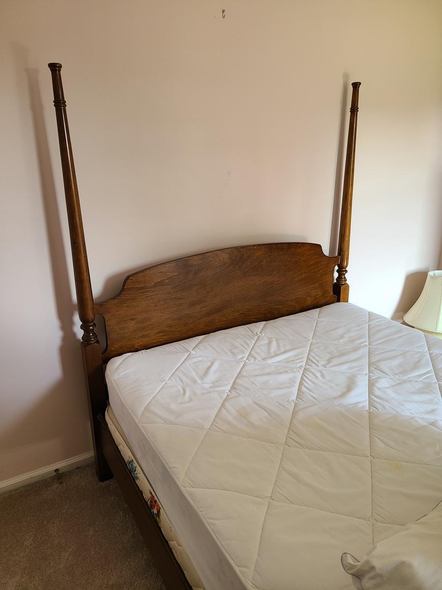 BED ONLY. NOT LINENS. Perfect for guests or child's room. This vintage bed is solid. The mattress is optional. The posts do not have tops. This comes with frame. Please see all pictures as they are the best representation of the items in the lot, the condition of the lot, and will show measurements if taken. If purchasing furniture you must be able to move yourself with your own help, and truck. .