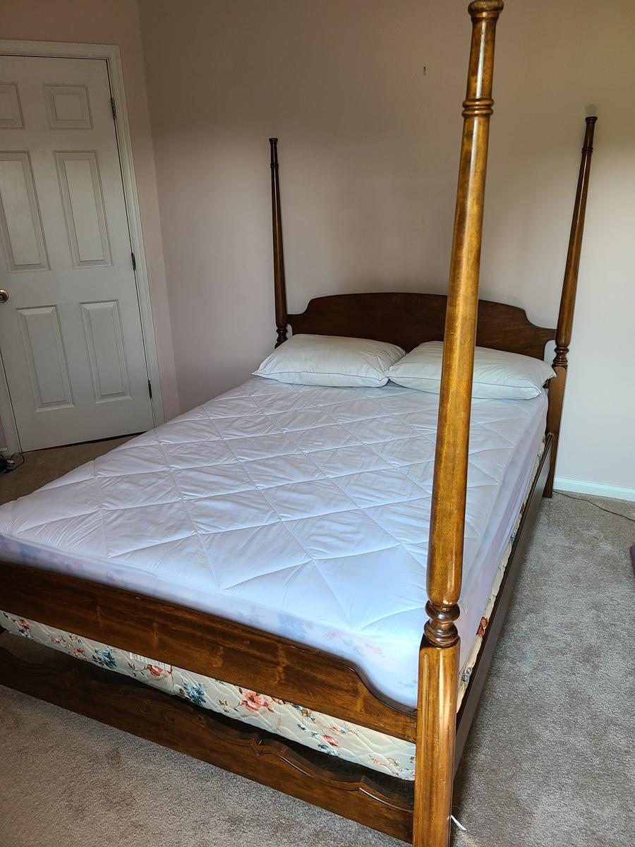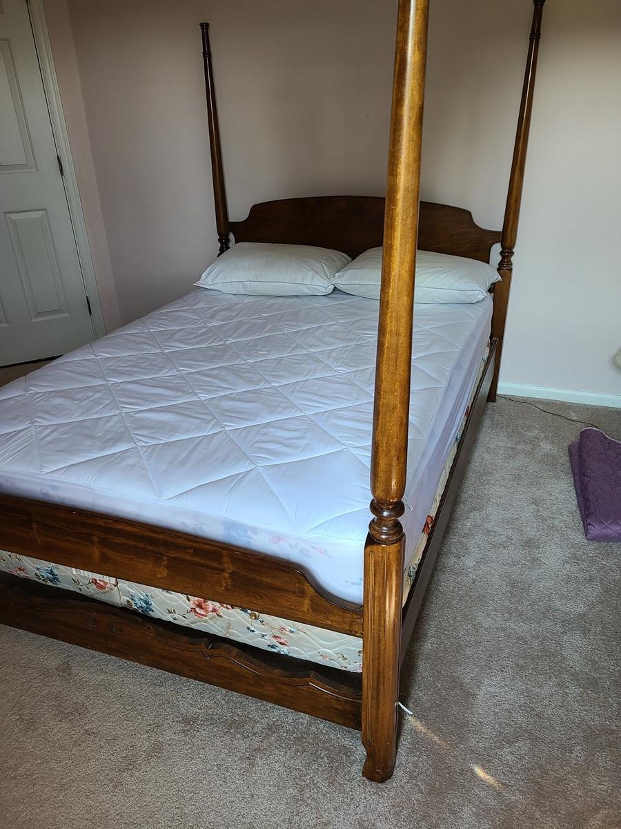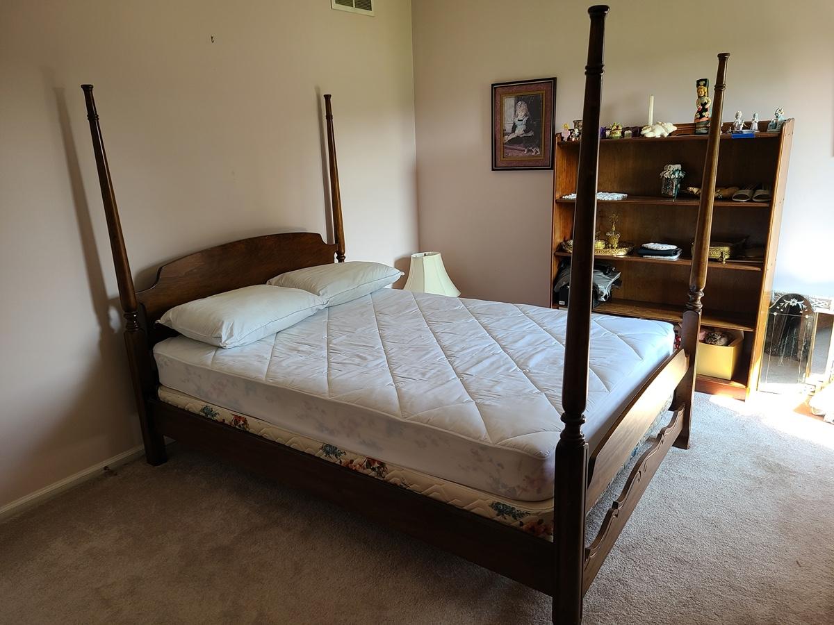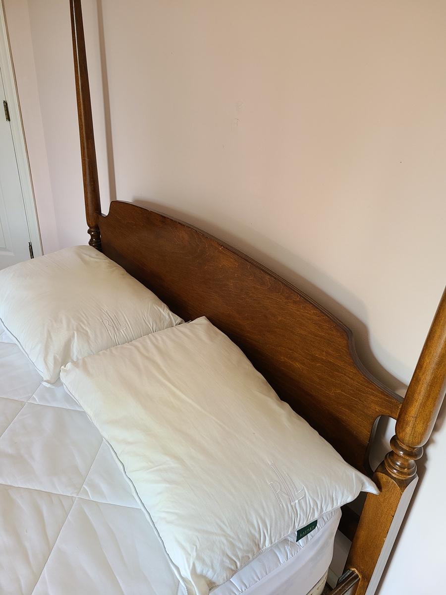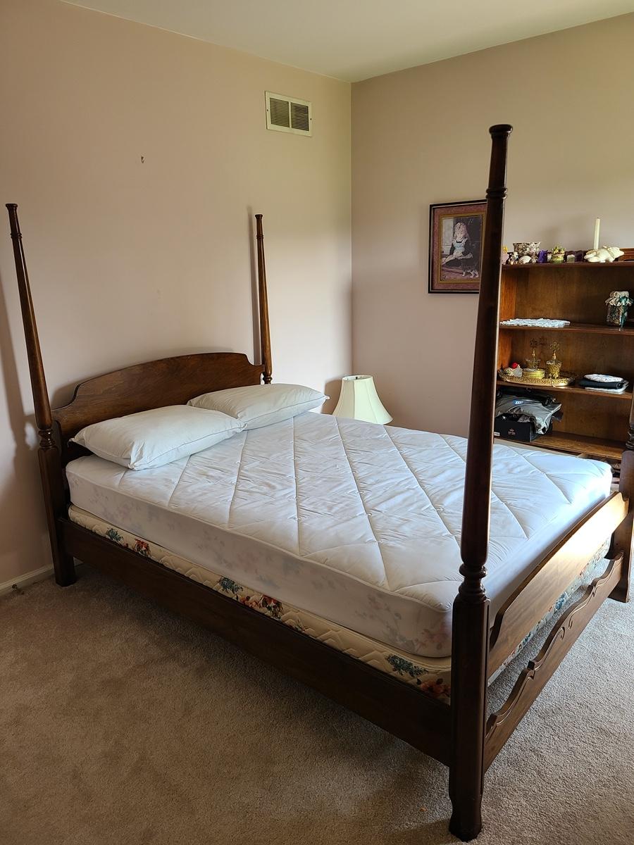 BED ONLY. NOT LINENS. Perfect for guests or child's room. This vintage bed is solid. The mattress is optional. The posts do not have tops. This comes with frame. Please see all pictures as they are the best representation of the items in the lot, the condition of the lot, and will show measurements if taken. If purchasing furniture you must be able to move yourself with your own help, and truck. .