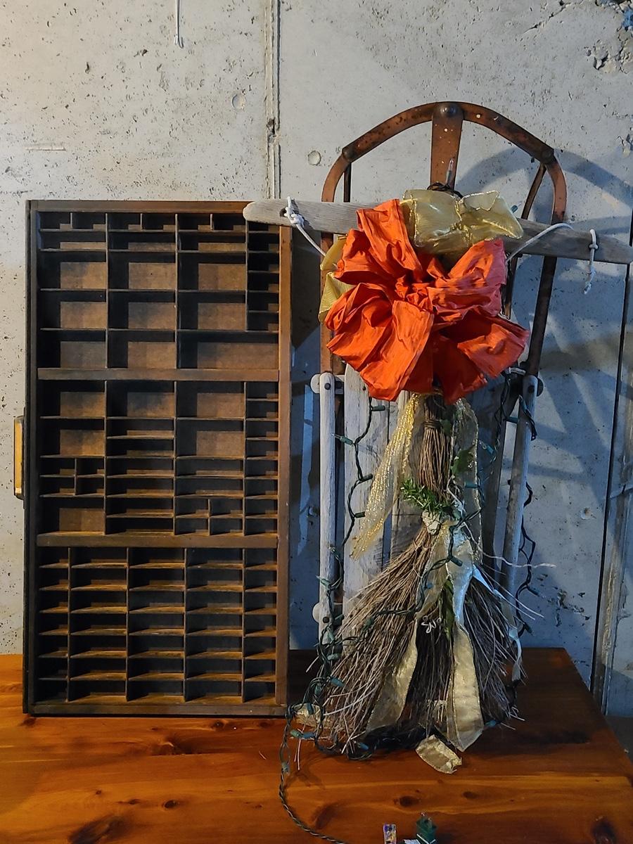 Lot 9 Basement: Antique Typeset Drawer and Sled