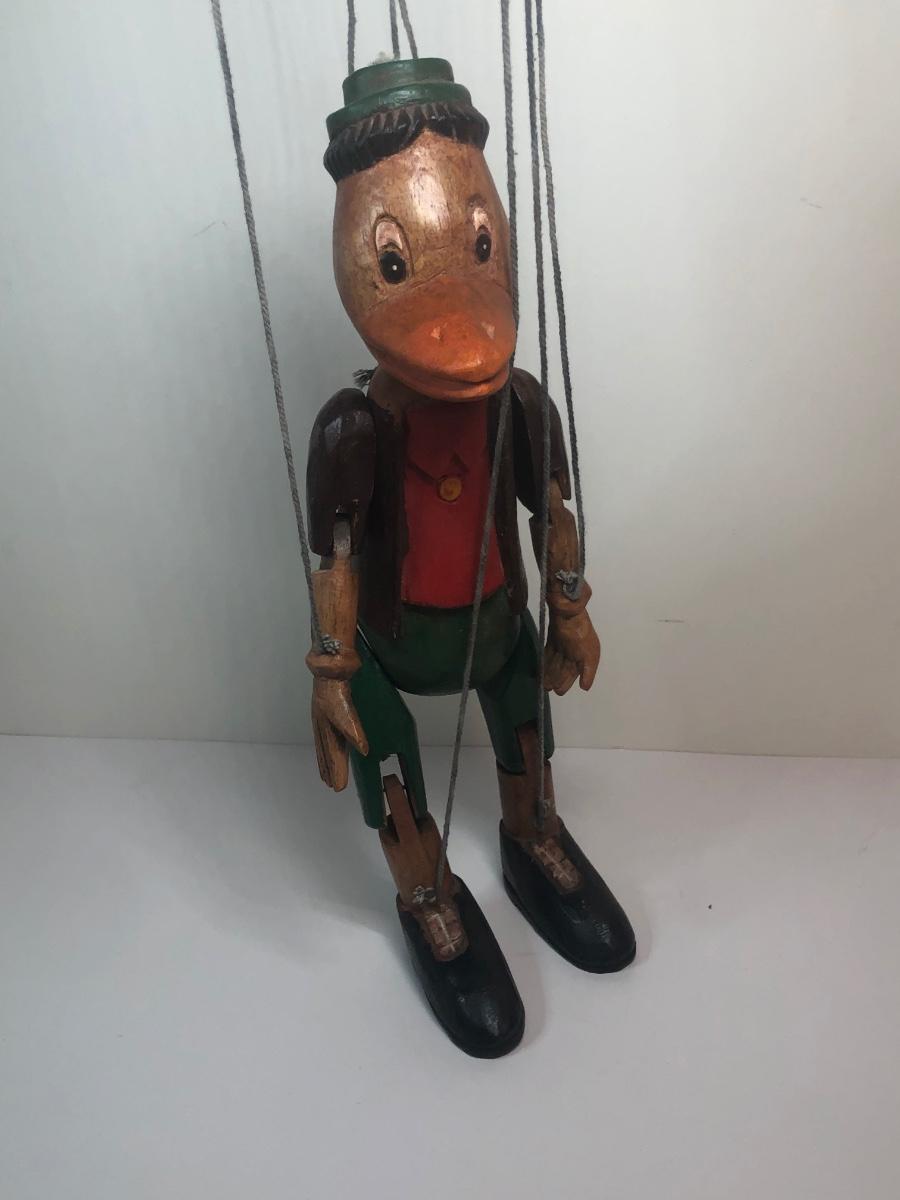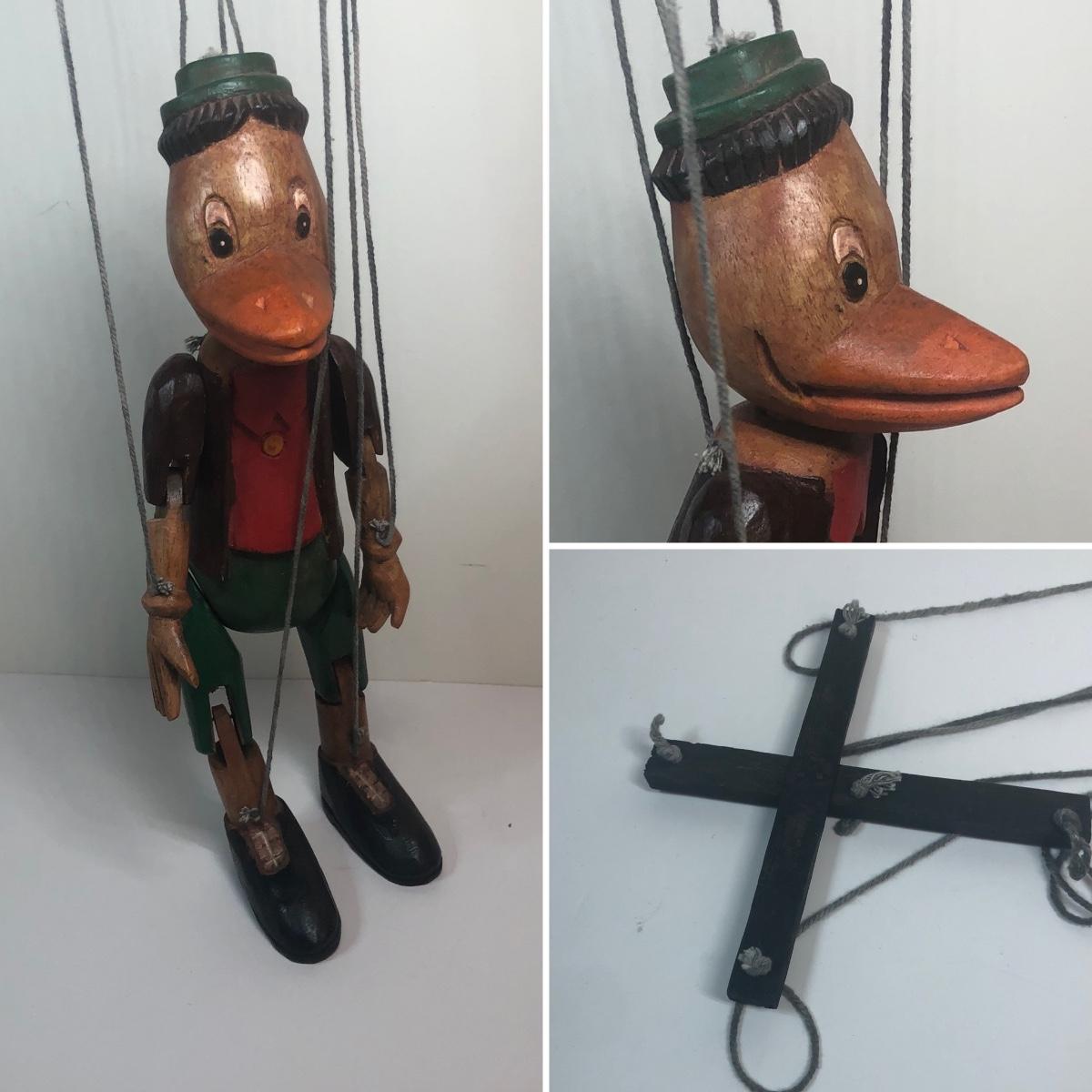 LOT 601M: Vintage Wood Duck Marionette Puppet