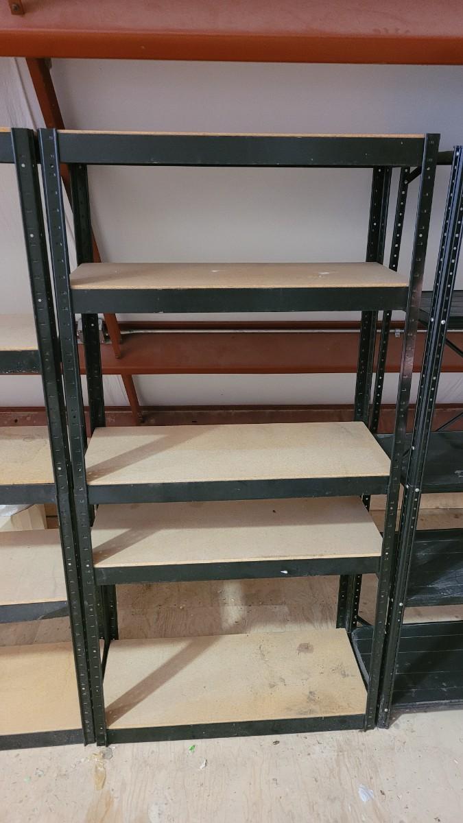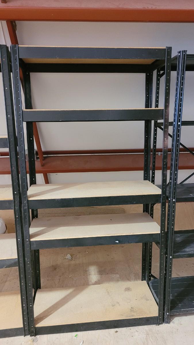 Lot 602: Black Metal Shelf with Pressed Wood Shelves #2