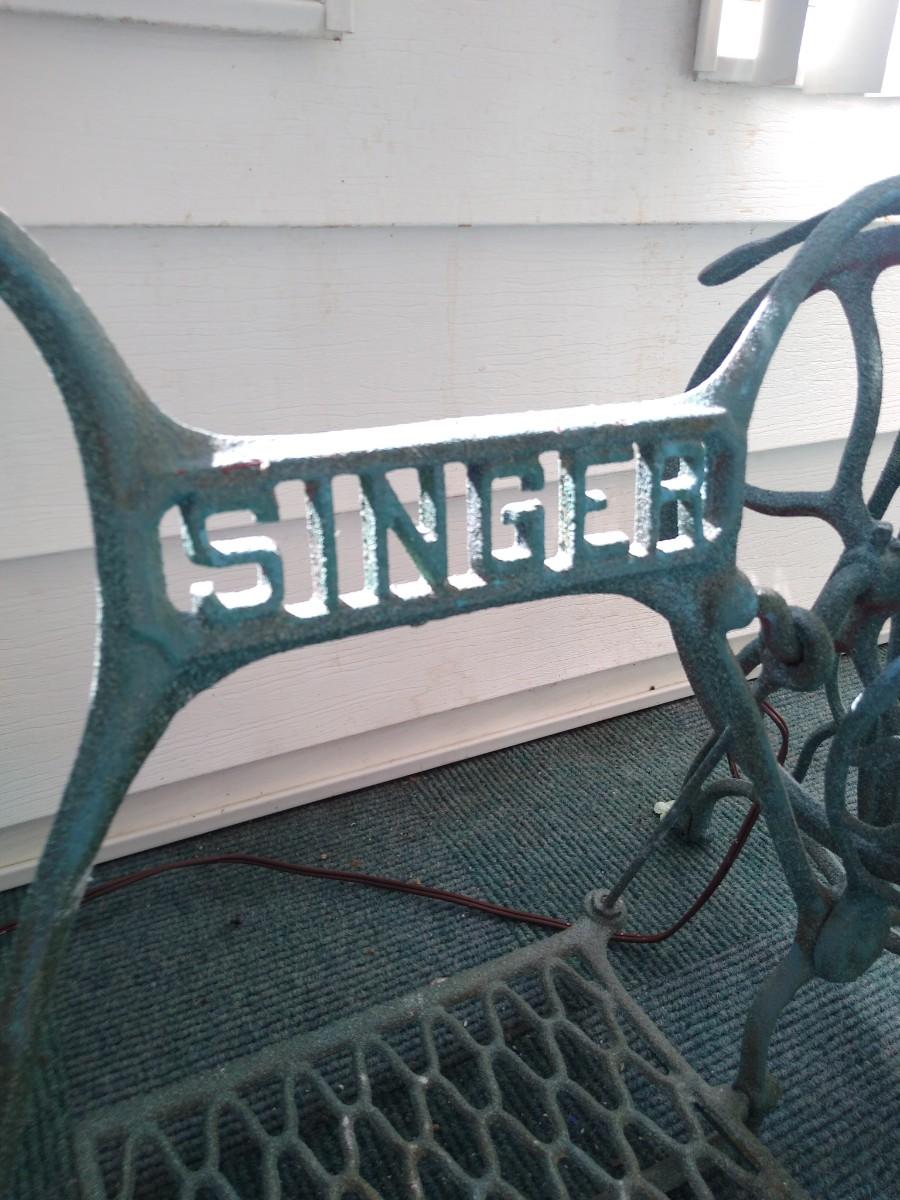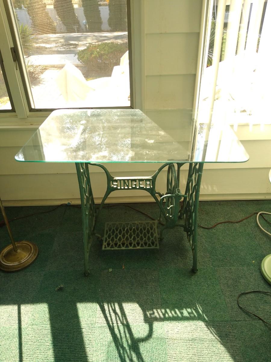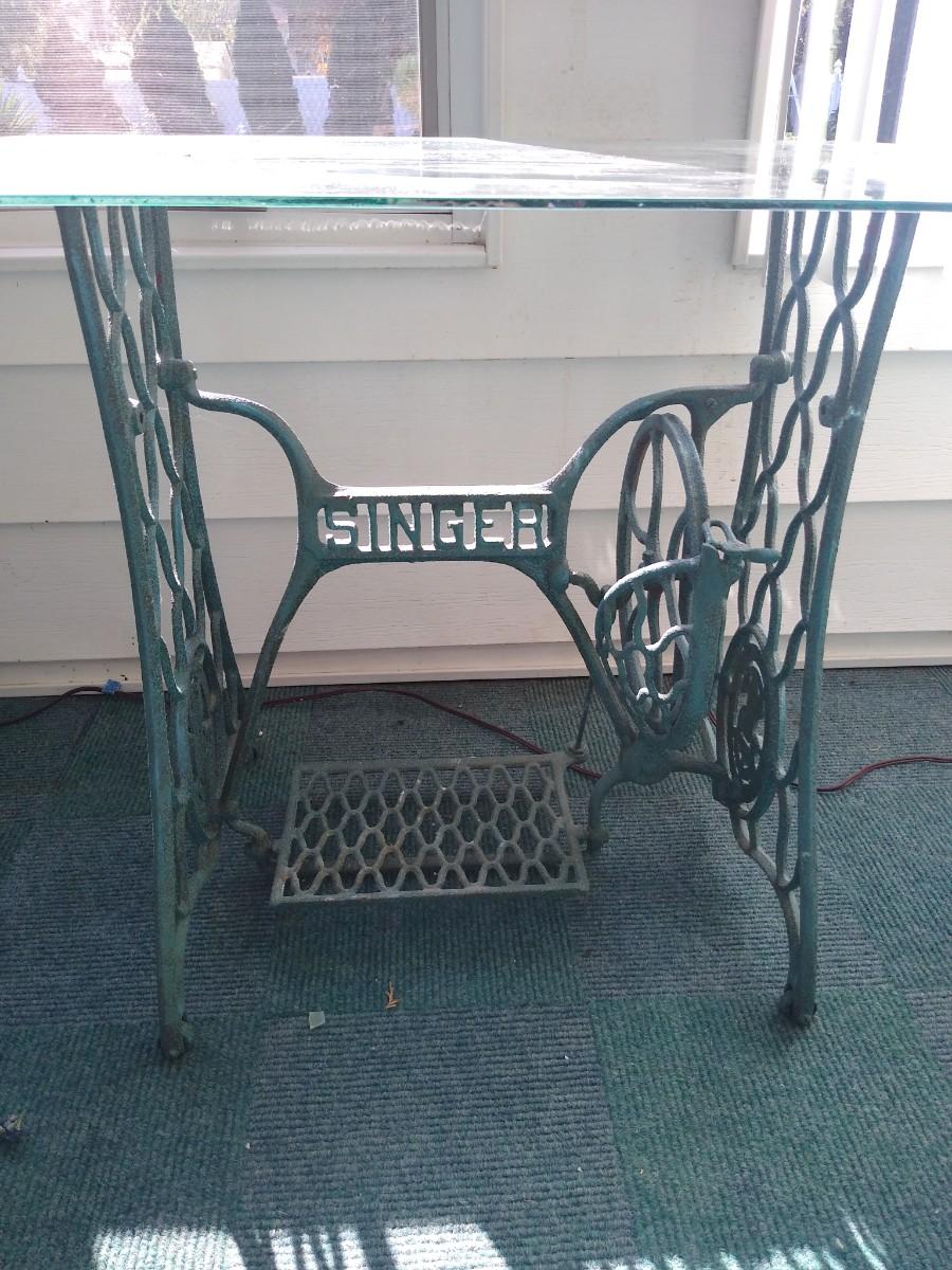 LOT 602P: Vintage Singer Iron Sewing Machine Base with Glass Top