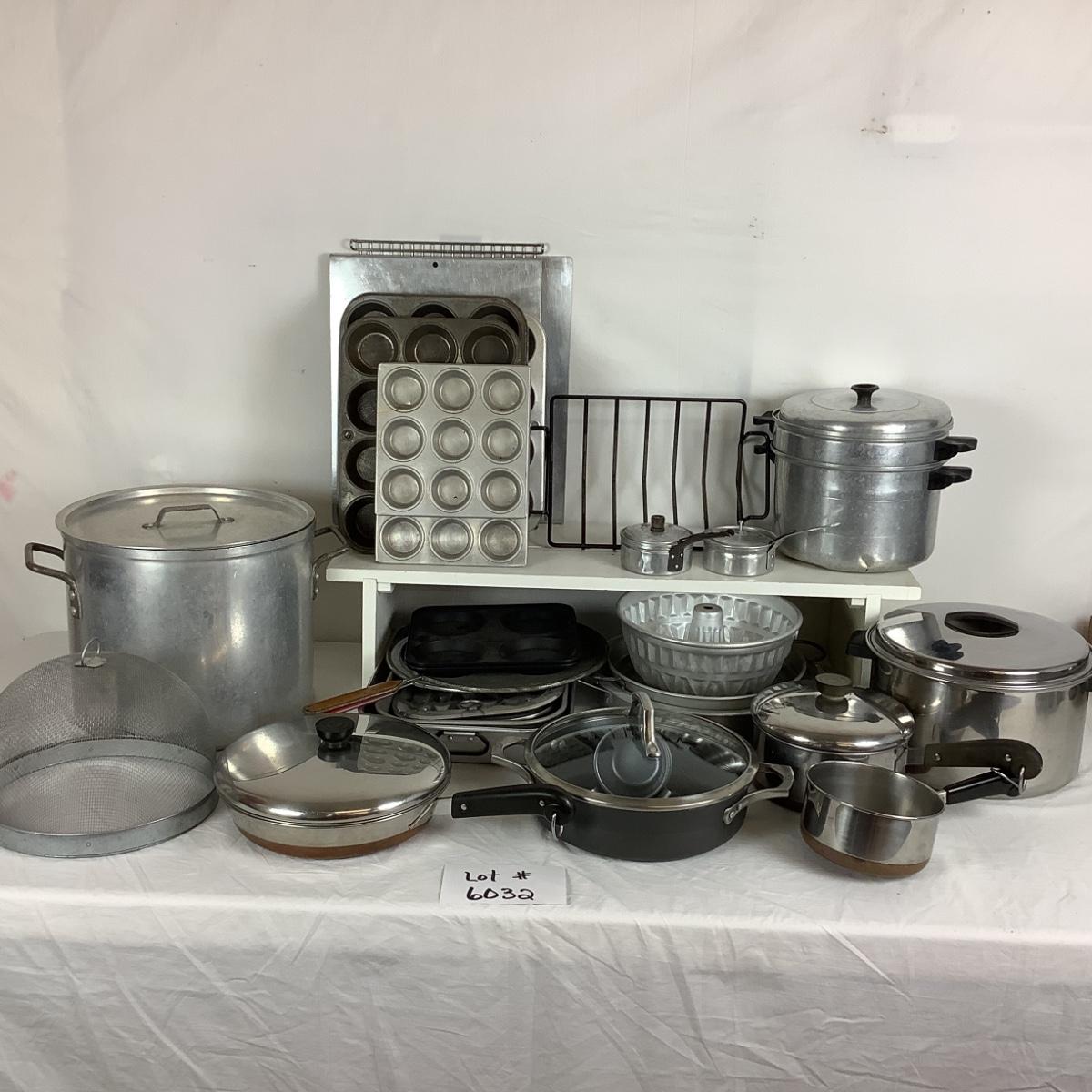 Lot 6032. Lot of Vintage Aluminum & Stainless Steel Pots & Pans
