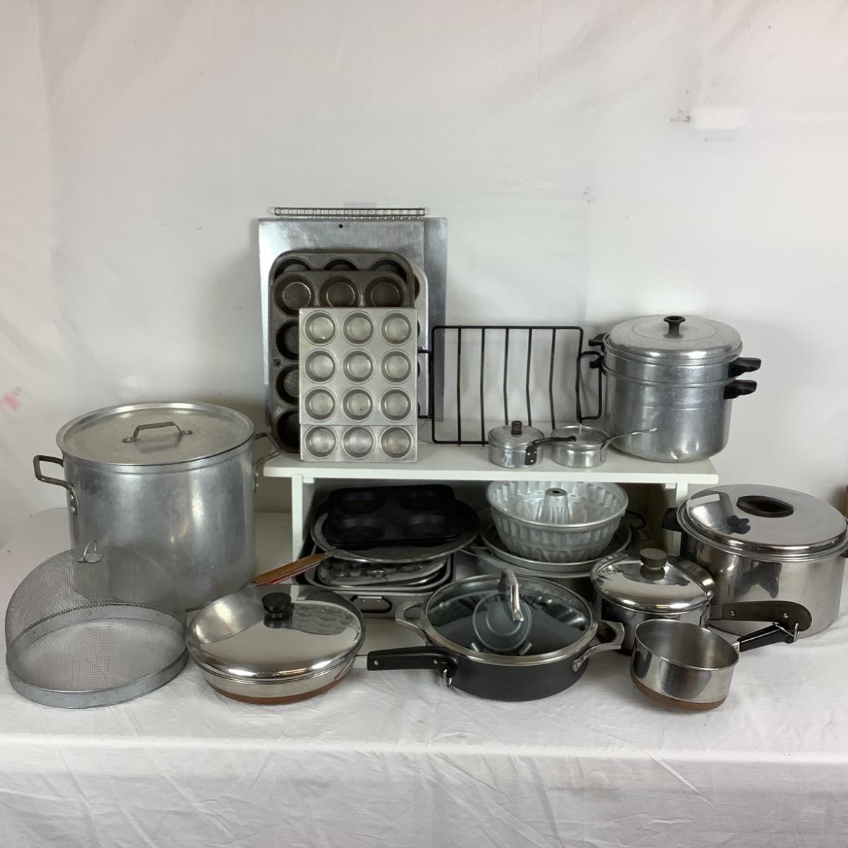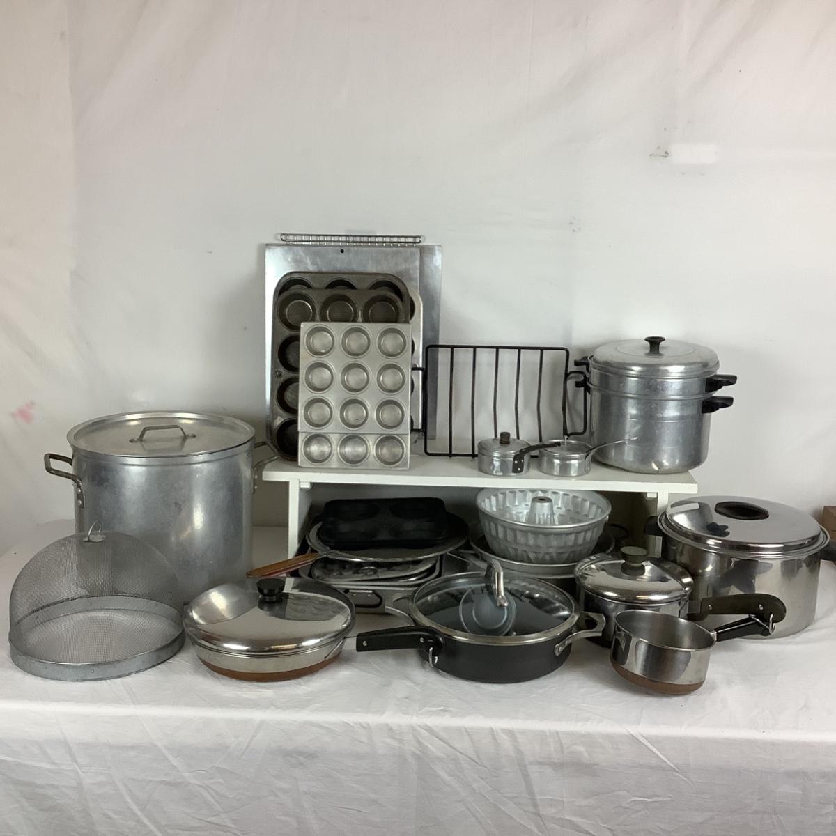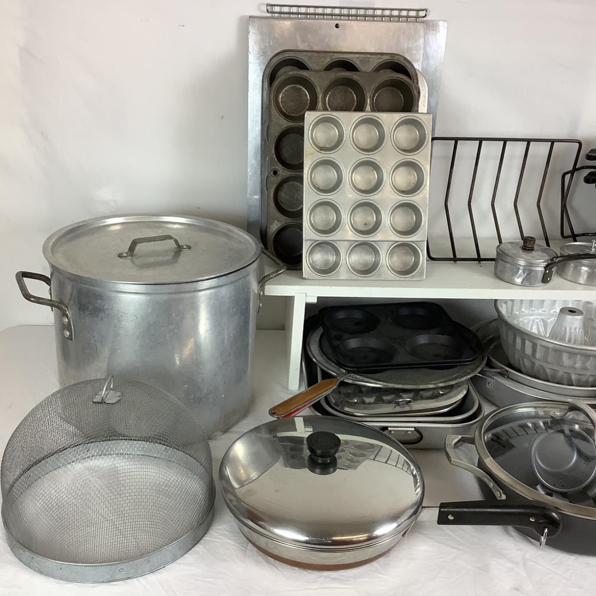 Lot of Vintage Aluminum & Stainless Steel Pots & Pans & Baking Pans