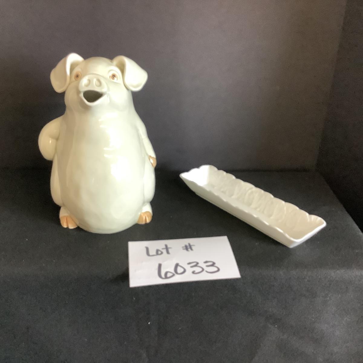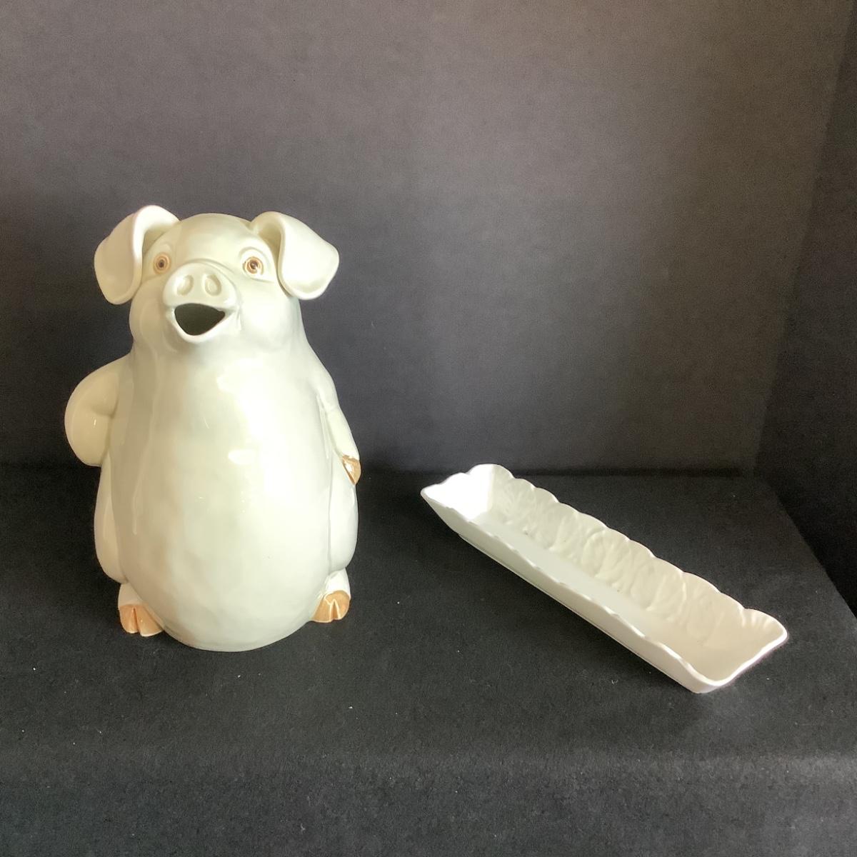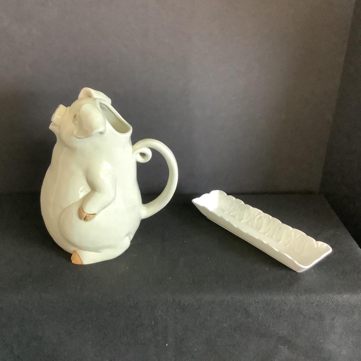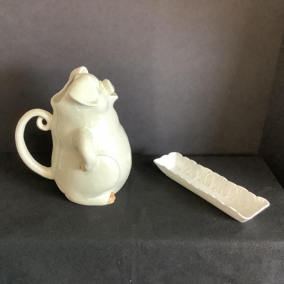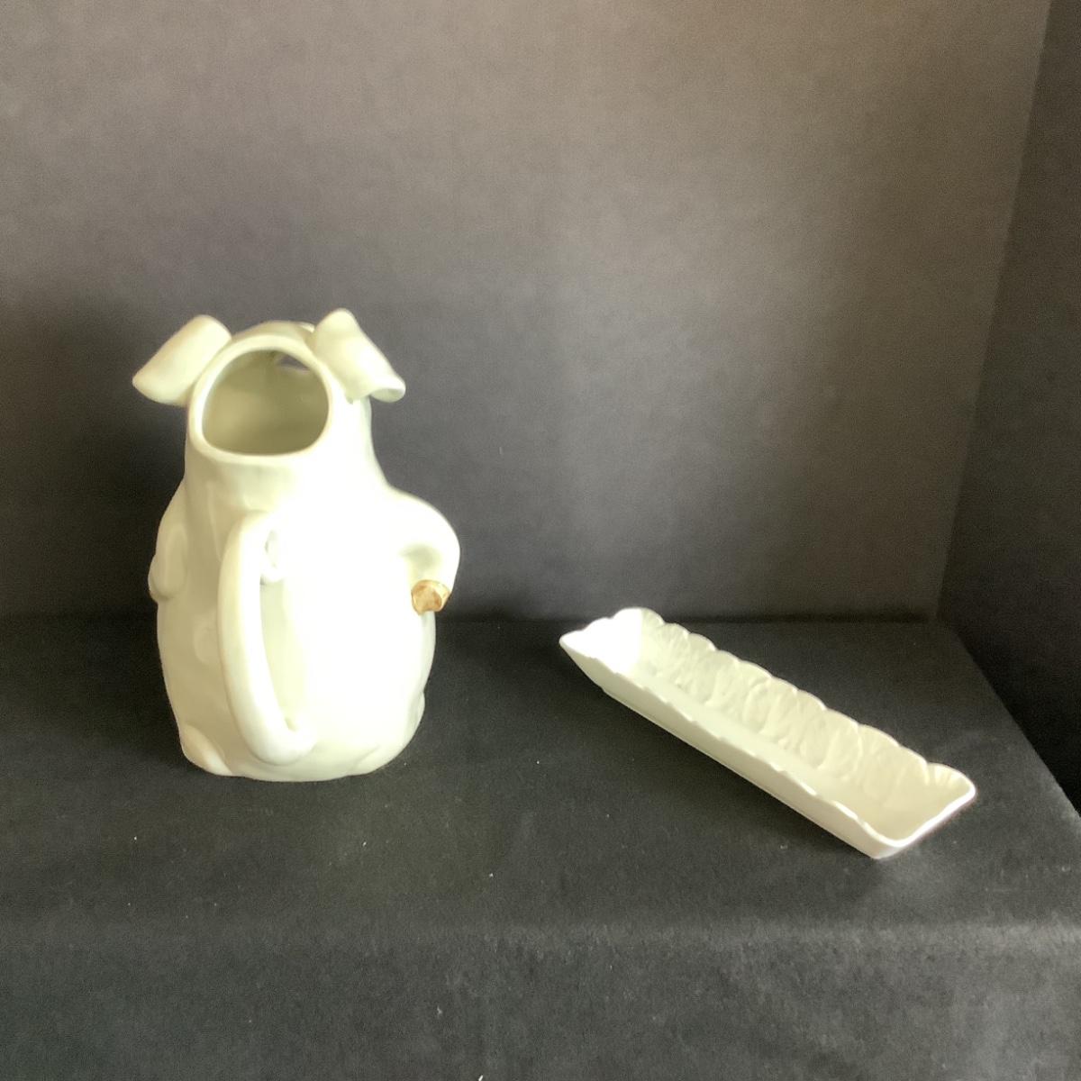 Lot. 6033 Fitz & Floyd “ Porky Pitcher “ & WEDGEWOOD White Rectangle Dish
