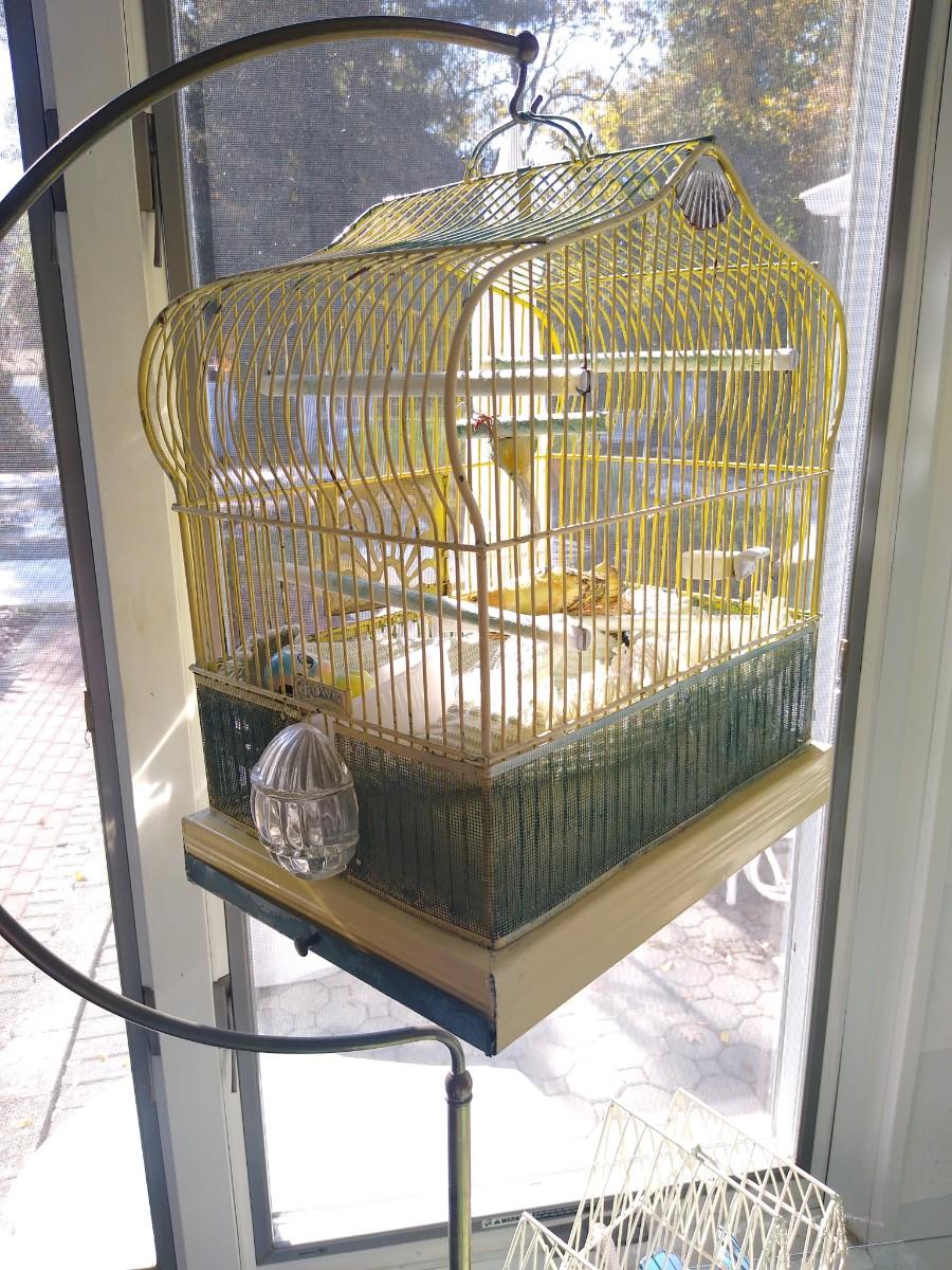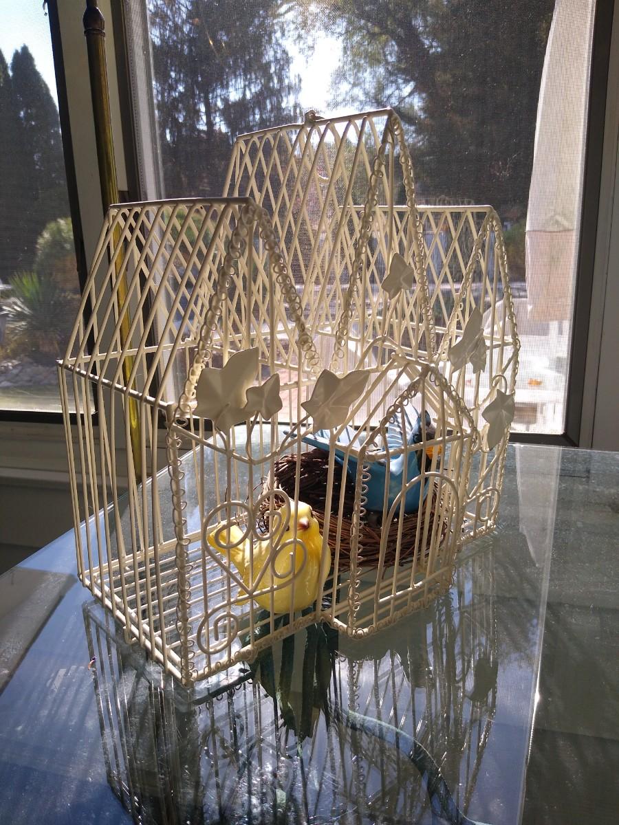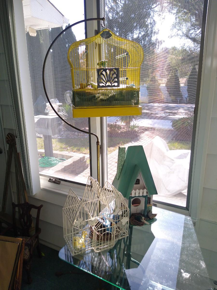 LOT 603P: Two Vintage Bird Cages with Bird House & More