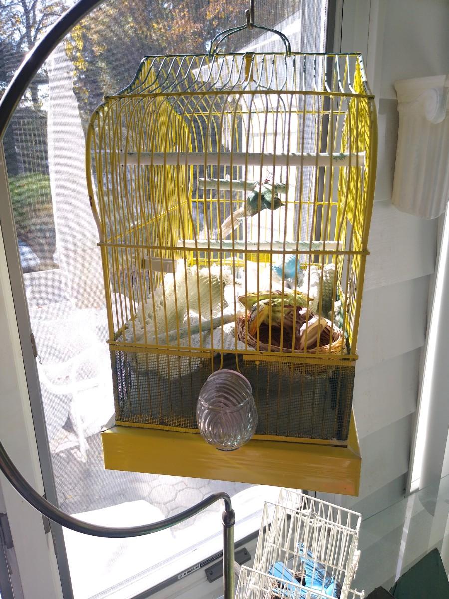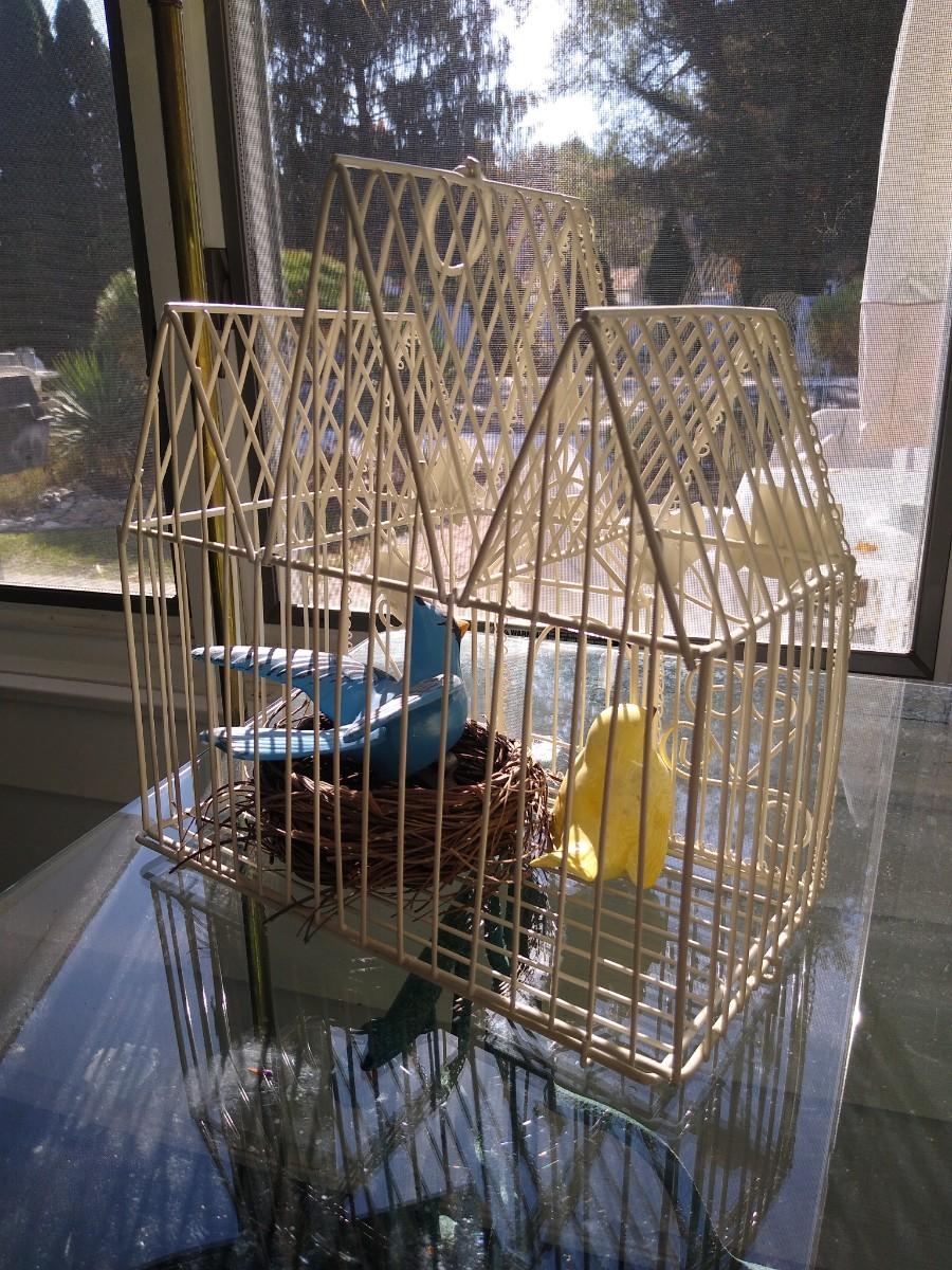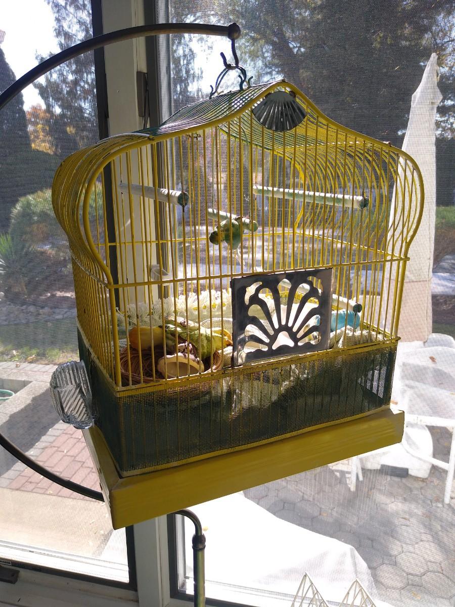 LOT 603P: Two Vintage Bird Cages with Bird House & More