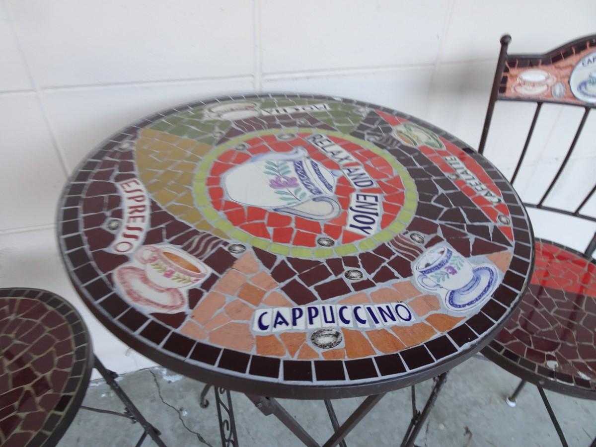 ONE CHAIR HAS TILE REPIAR SEE CLOSE UP PIC