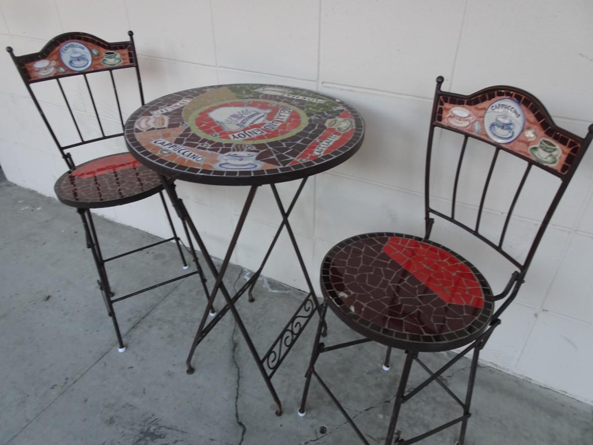 LOT 604. BAR HEIGHT TILE BISTRO SET