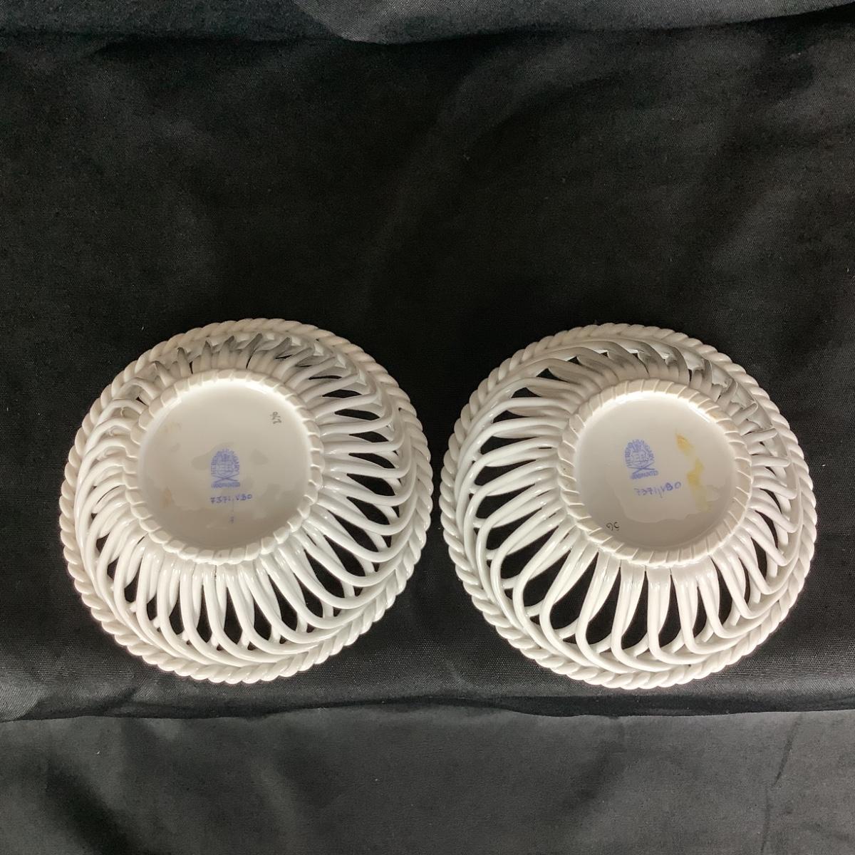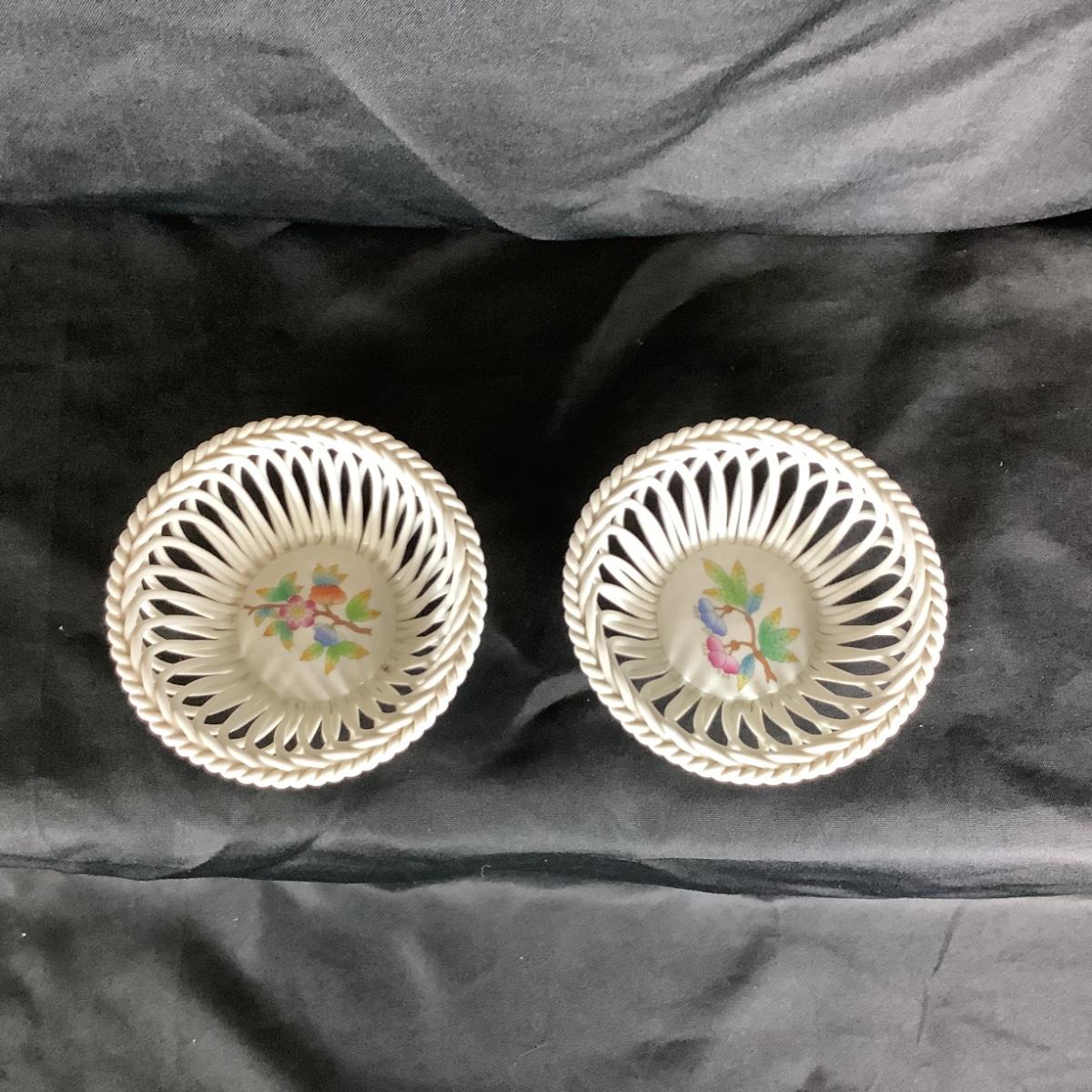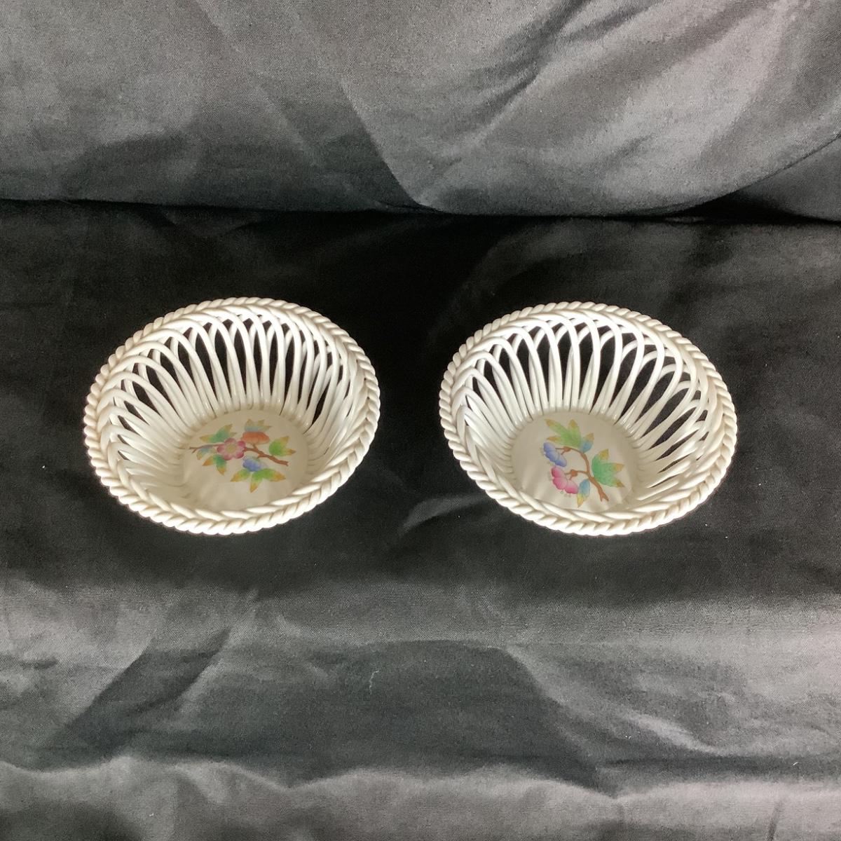 Lot  6049. Pair of Vintage Herend  HVNGARY Hand Painted Petite Floral Porcelain Basket Weave Dish/Bowl