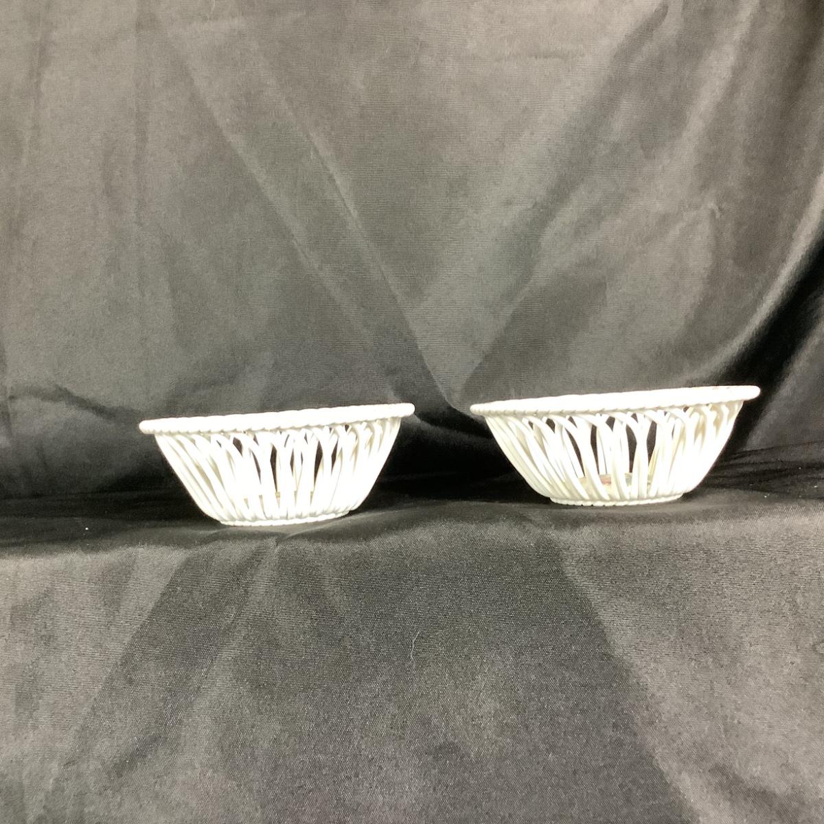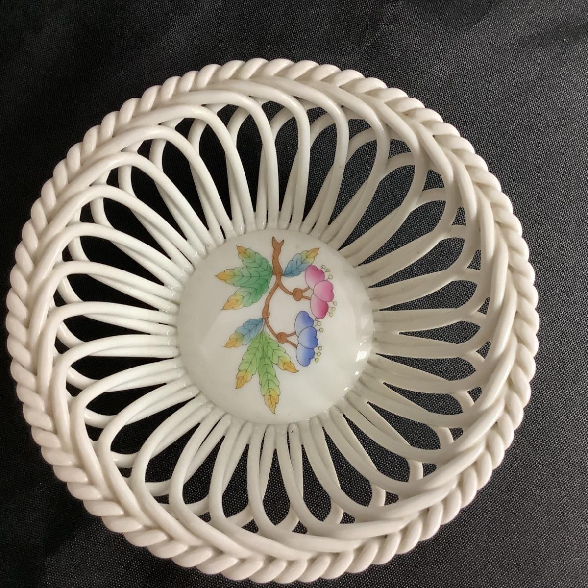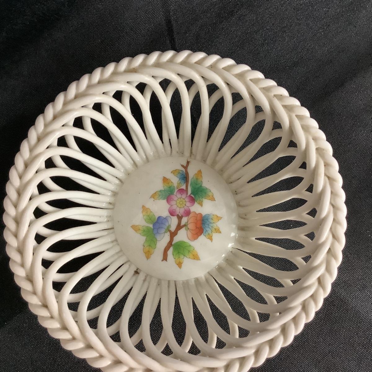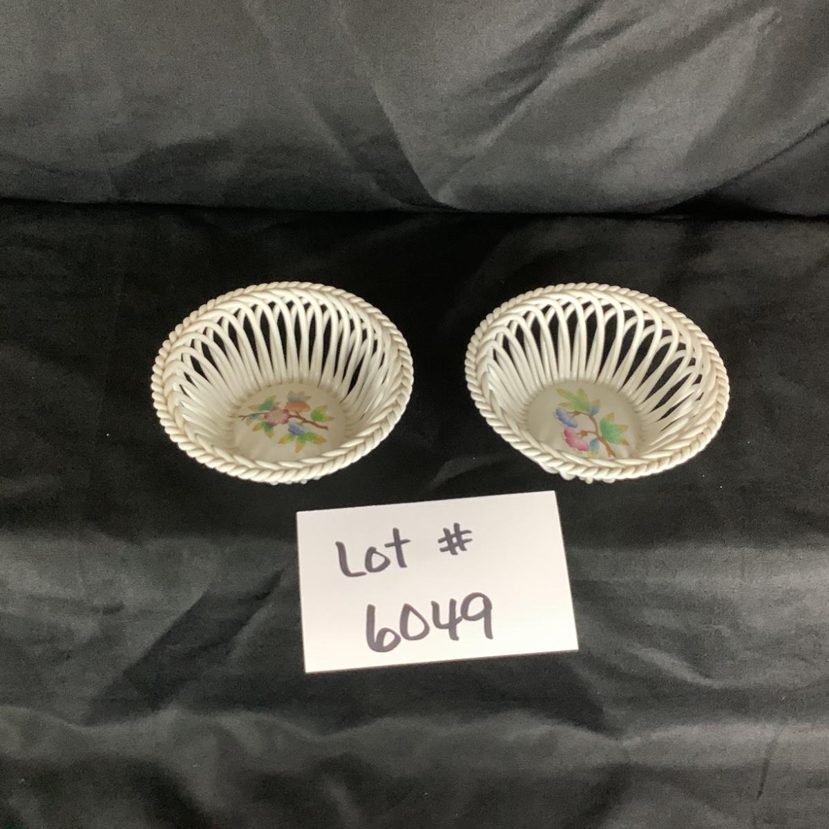 Lot 6049. Pair of Vintage Herend HVNGARY Hand Painted Petite Floral Porcelain Basket Weave Dish/Bowl