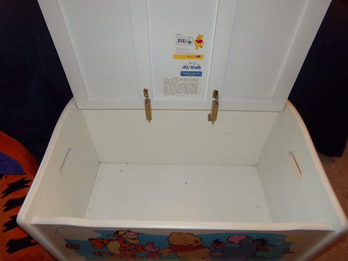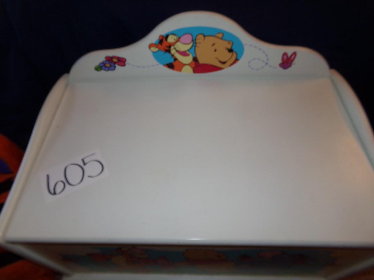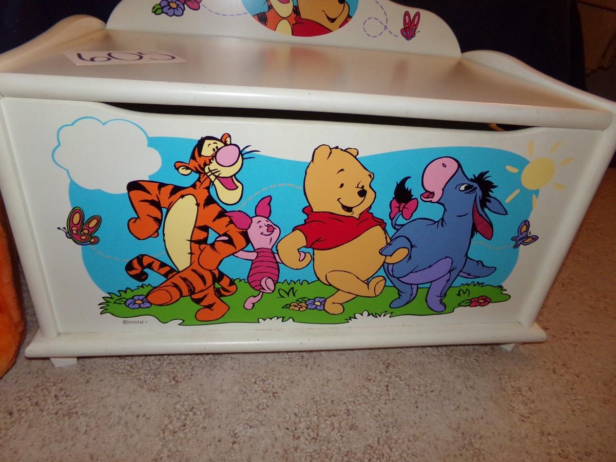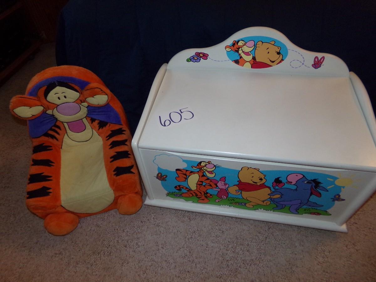 WINNIE THE POOH TOY BOX. GOOD CONDITION. MEASURES 22 X 30 X 18. ALSO A TIGGER CHILDRENS CHAIR.