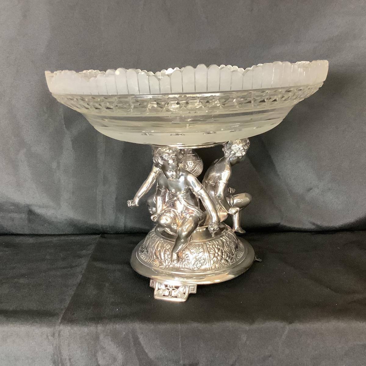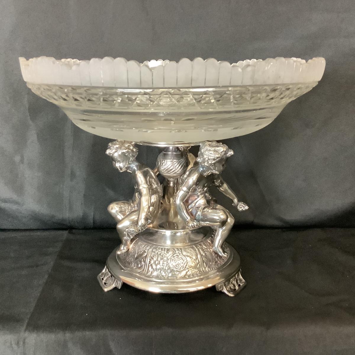 Lot. 6058 Vintage Pairpoint Quadruple Plated Pedestal and Cut Glass Centerpiece Bowl