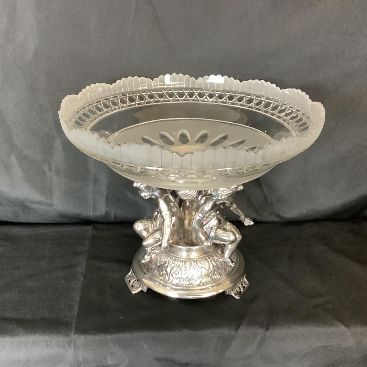 Vintage Pairpoint Quadruple Plated Pedestal and Cut Glass Centerpiece Bowl, circa 1920