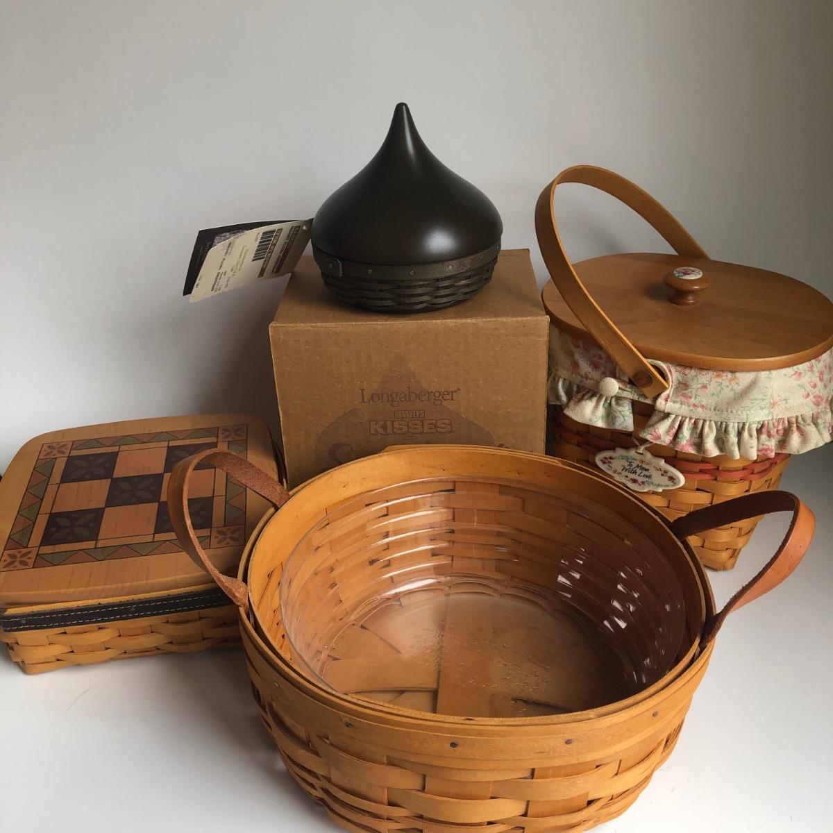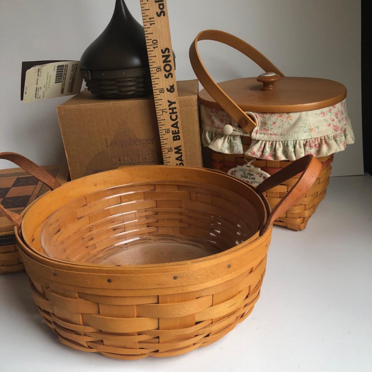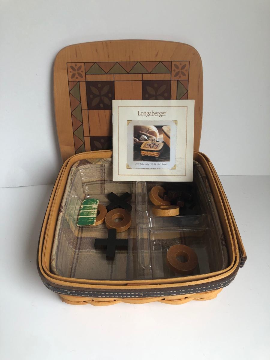LOT 605K: Longaberger Collection - Hershey Kiss Basket w/ Box & Insert, Dad Tic Tac Toe, Mother's Day & Double Handle Circular Basket
