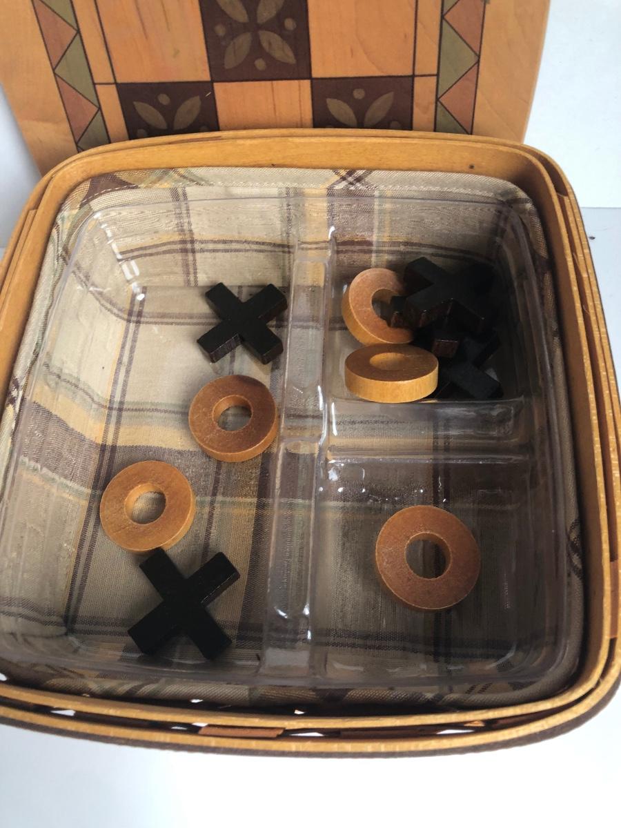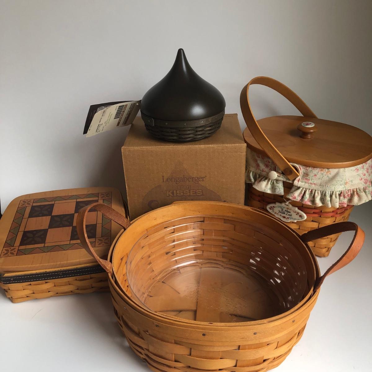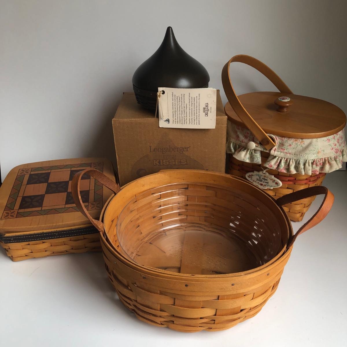 LOT 605K: Longaberger Collection - Hershey Kiss Basket w/ Box & Insert, Dad Tic Tac Toe, Mother's Day & Double Handle Circular Basket