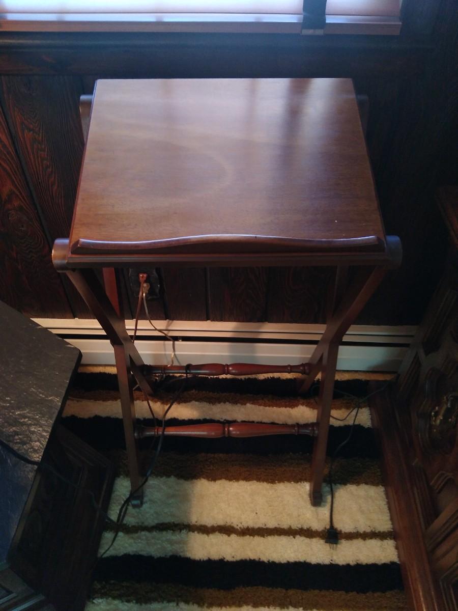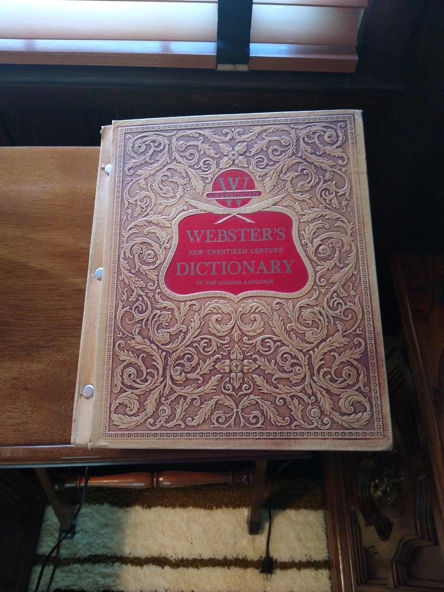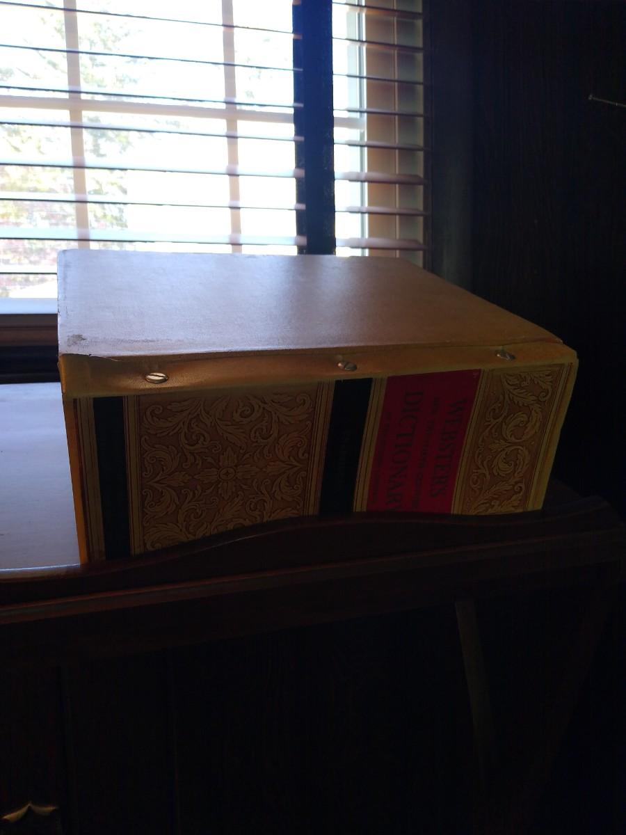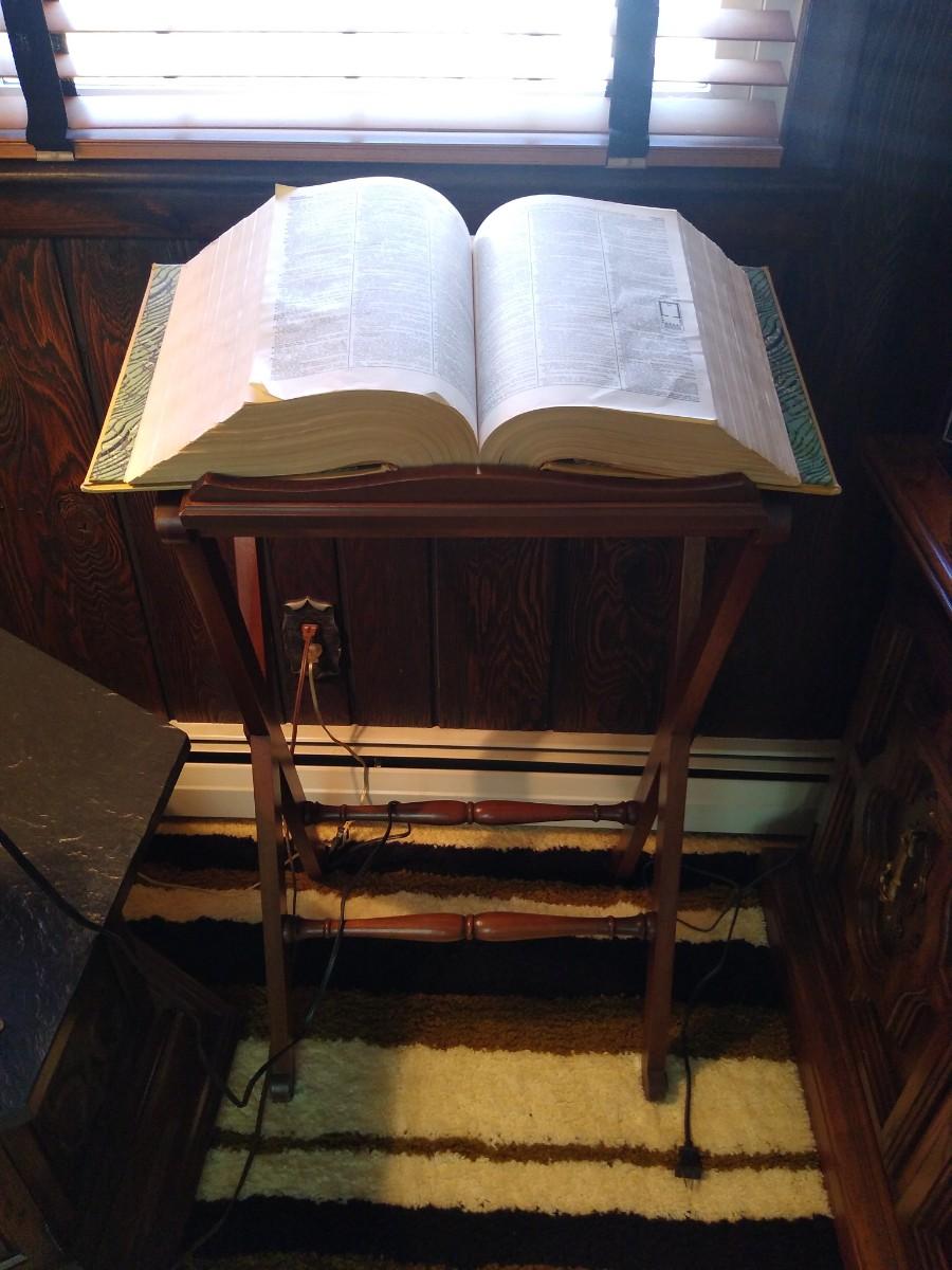 LOT 605Z: Vintage Drexel Wood Podium Book Stand w/ 1957 Webster's Unabridged Dictionary