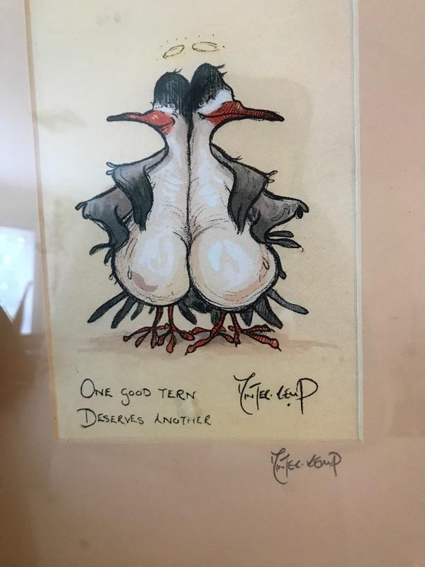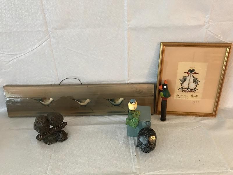 Running bird sign 25-1/2” long and 6” tall, owl figurine, carved owl, whistle bird, One God Tern Deserves Another Art, Signed