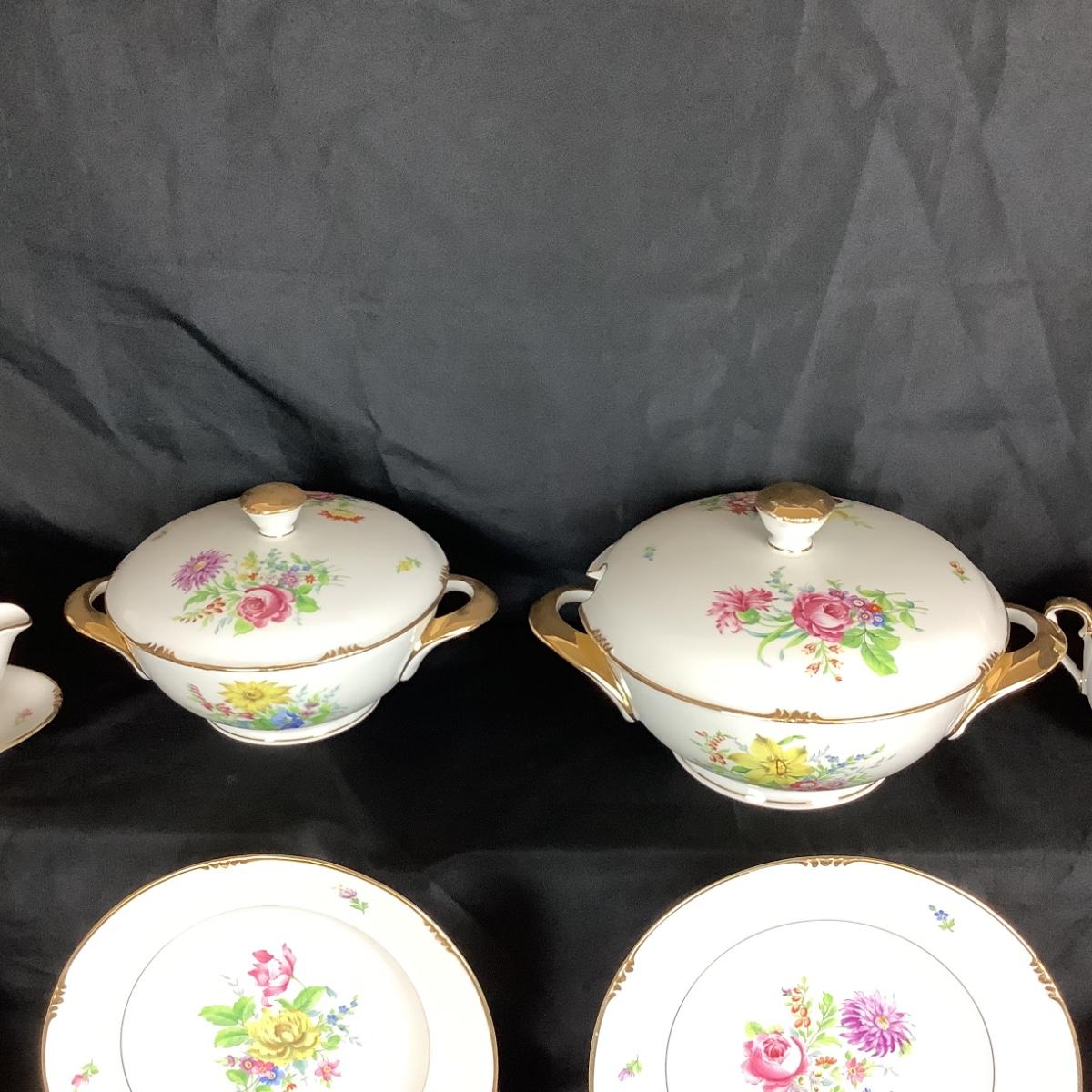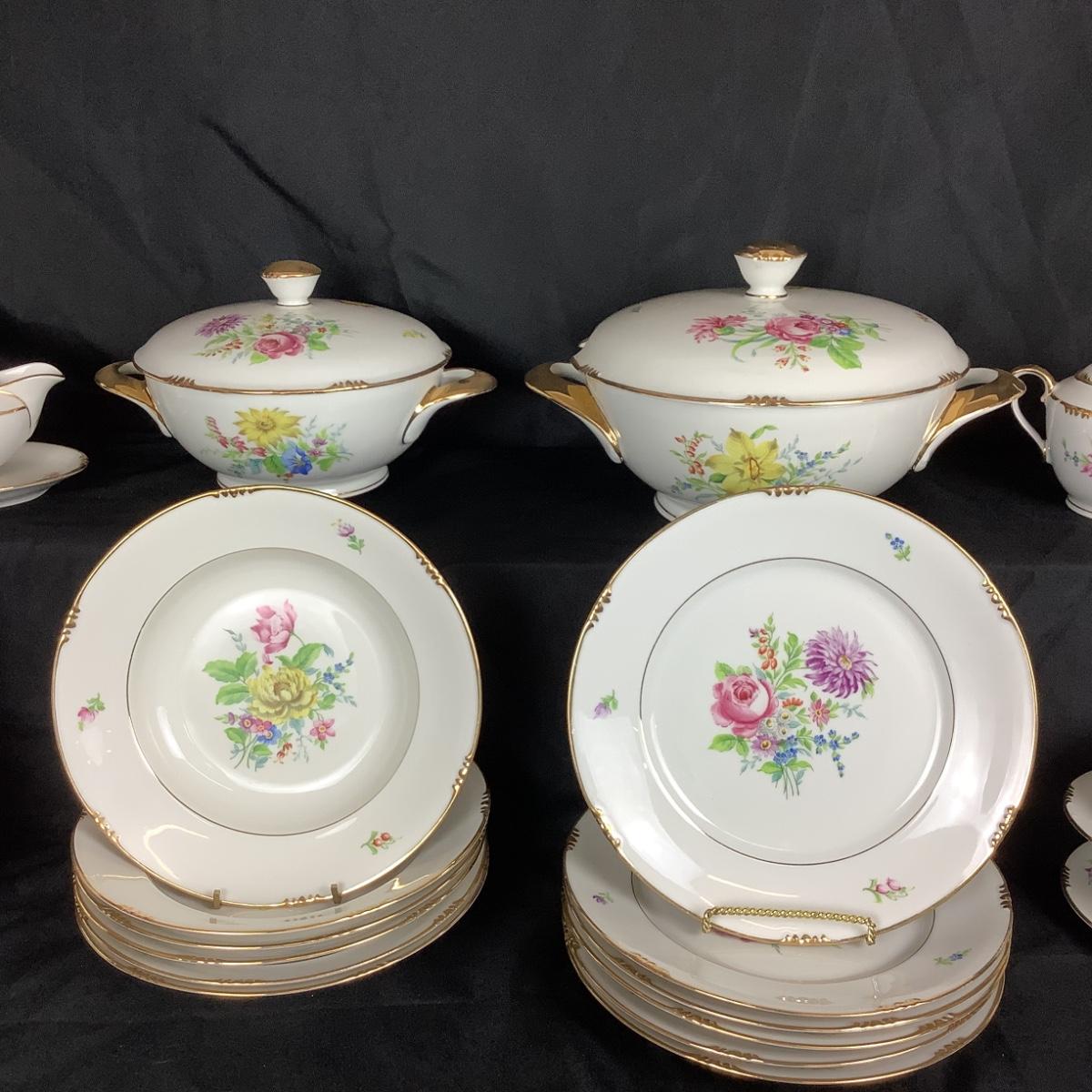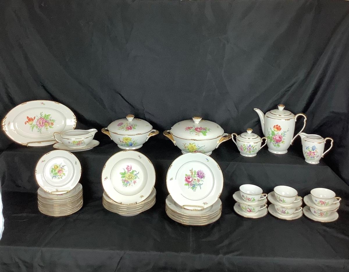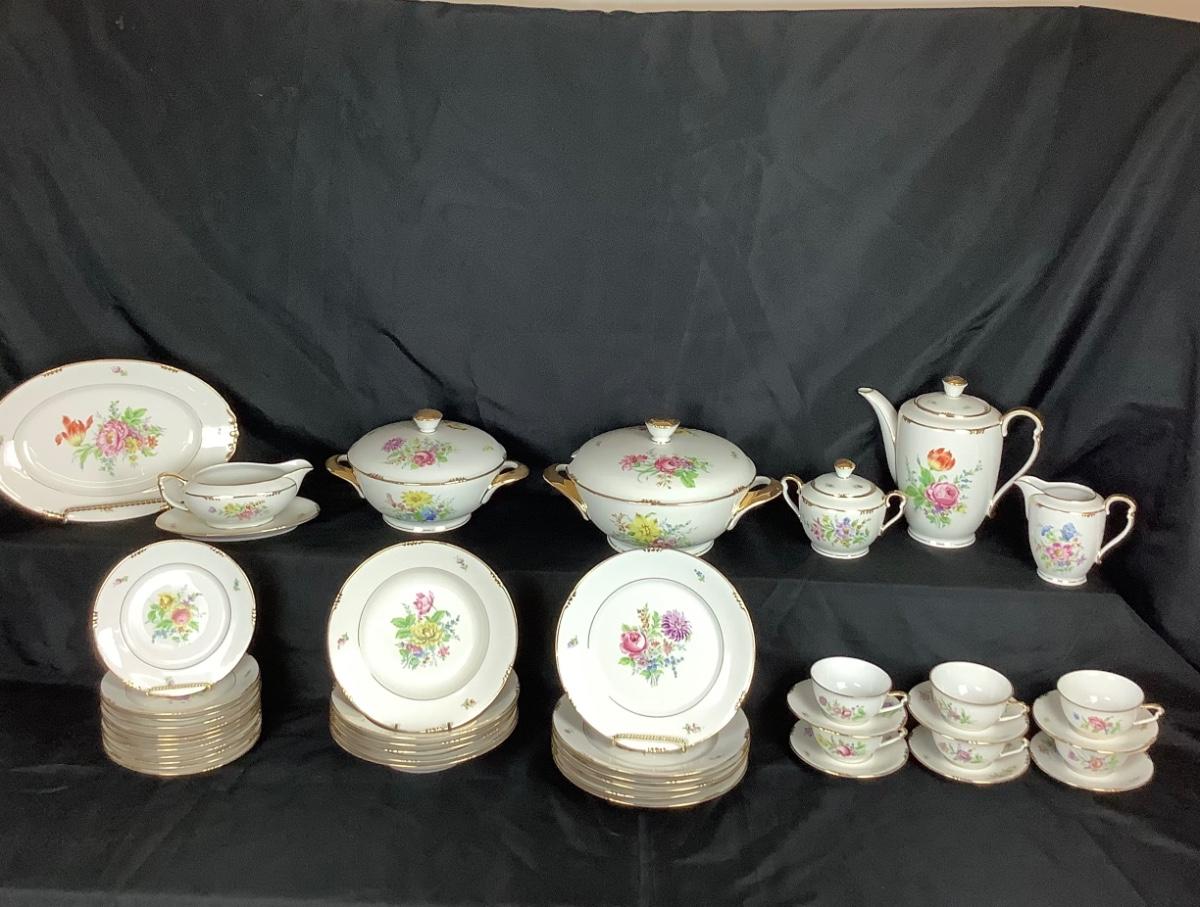Lot 6061. Set of Vintage Floral Porcelain China with Gold Anchor/Cable Marking