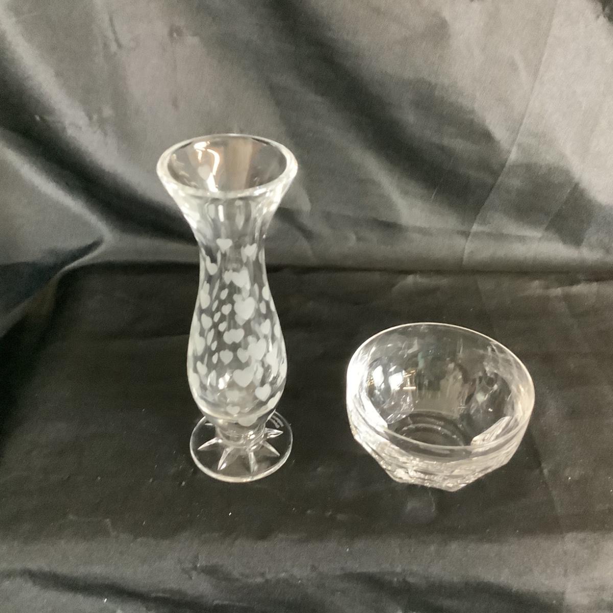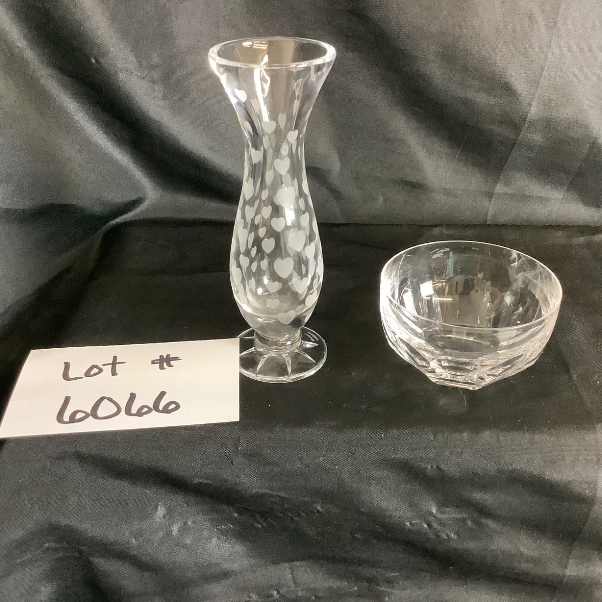 Lot 6066 Waterford Marquise Miniature Heart Bud Vase & Sheila Cut Finger Bowl