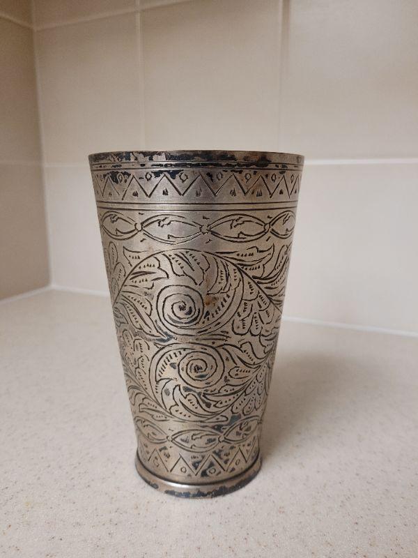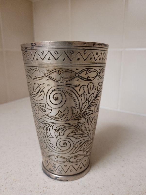 Lot 607:  Middle Eastern Beaker Vessel- Silver cup with Gold Wash Interior