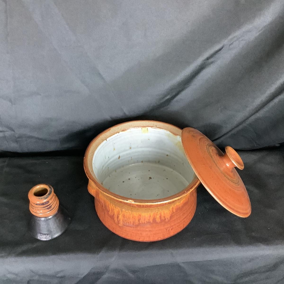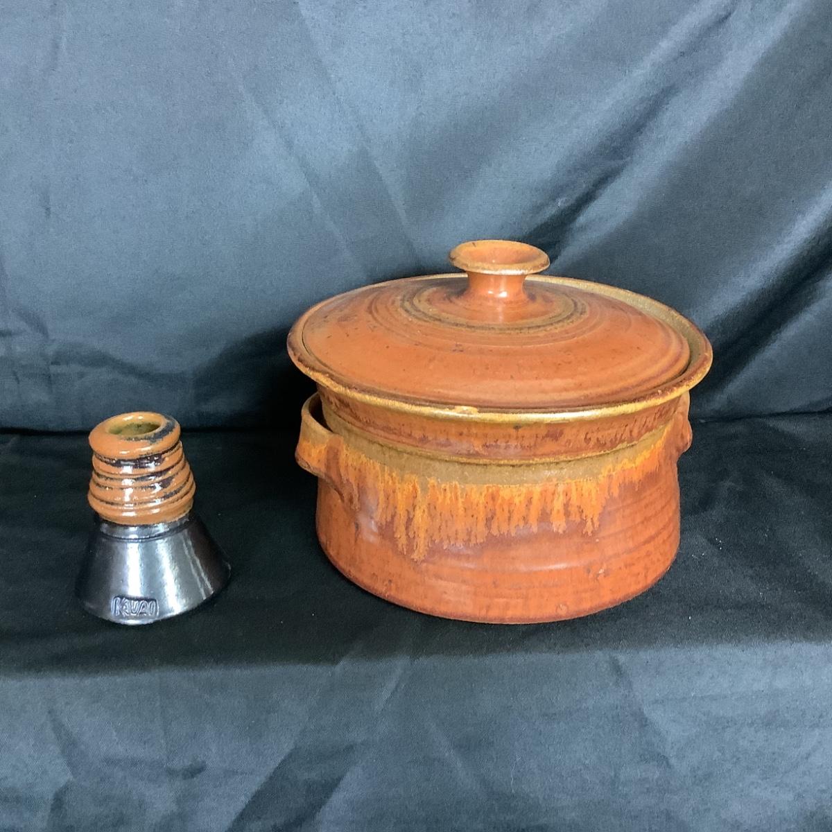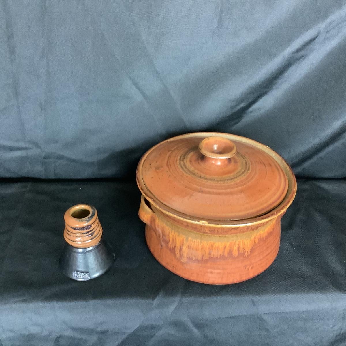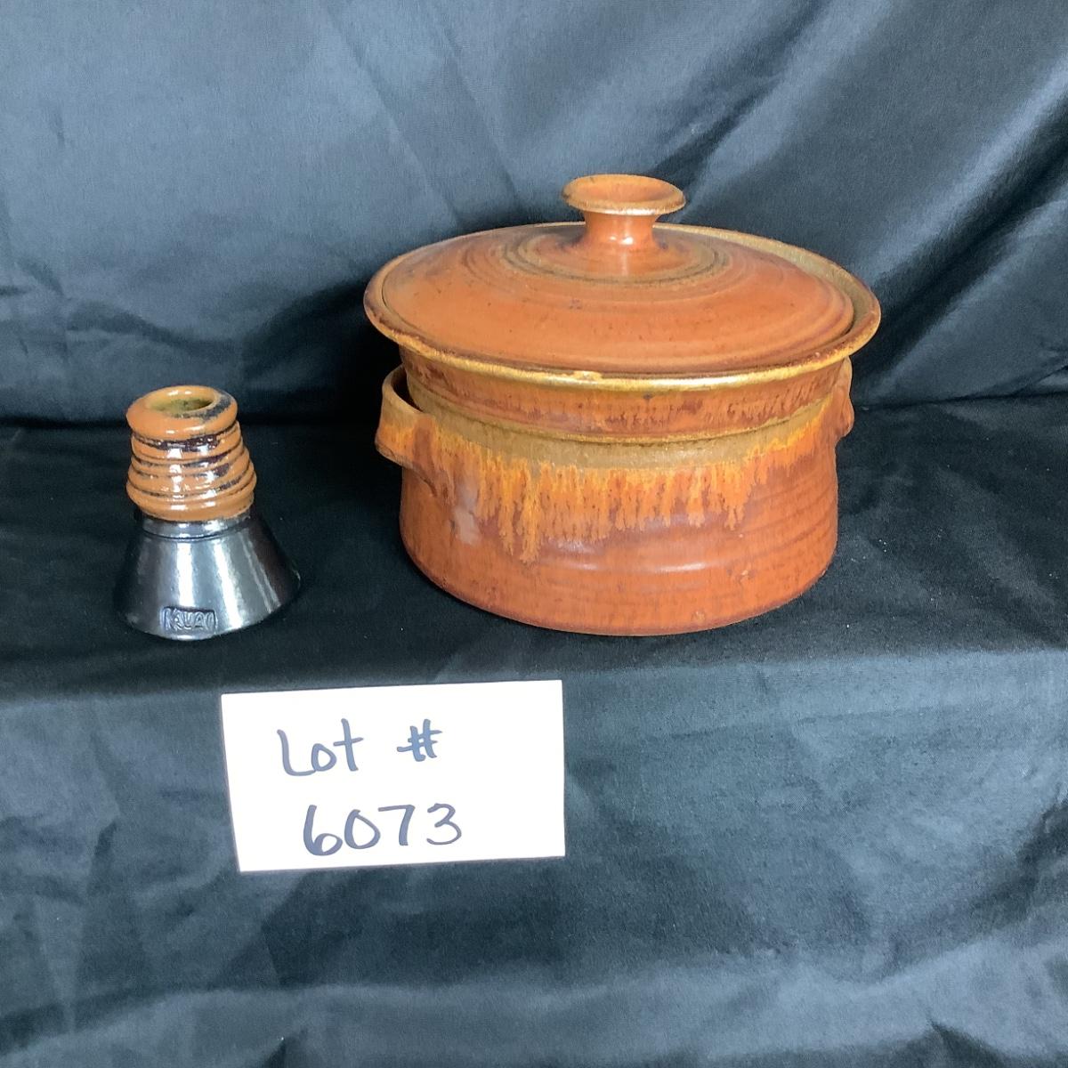 Lot. 6073. Signed Vintage Covered Pottery Bowl & Pottery Vase