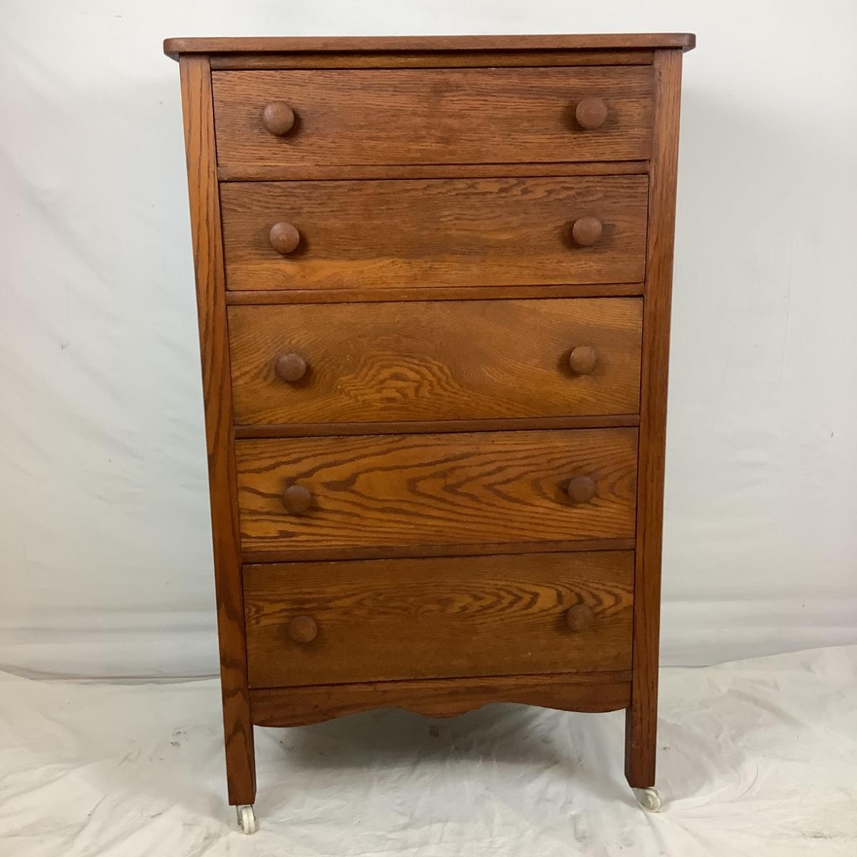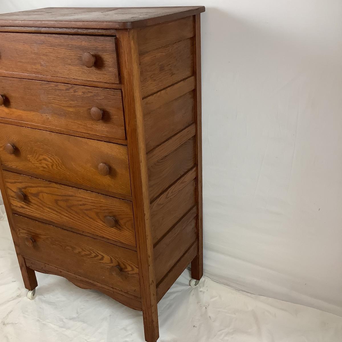 Lot. 6076 Vintage Five Drawer Oak Dresser