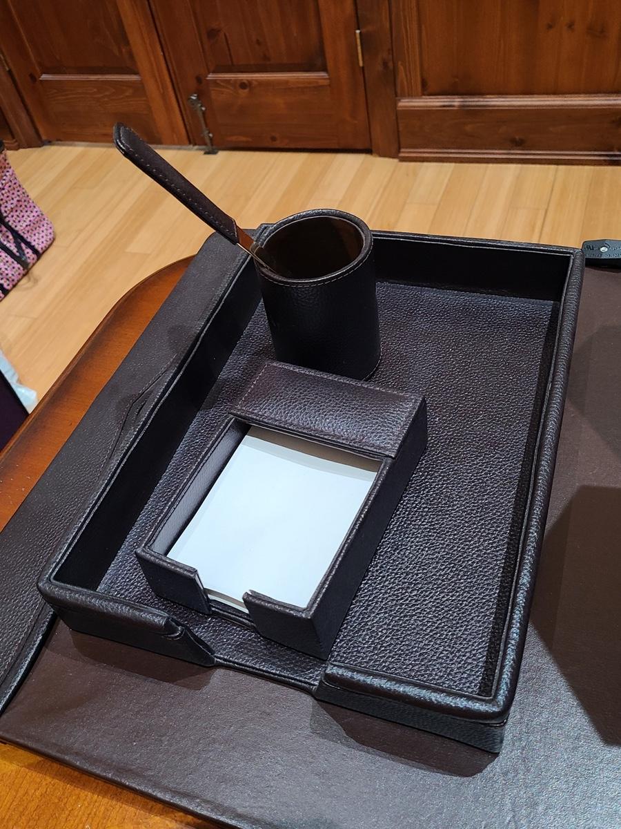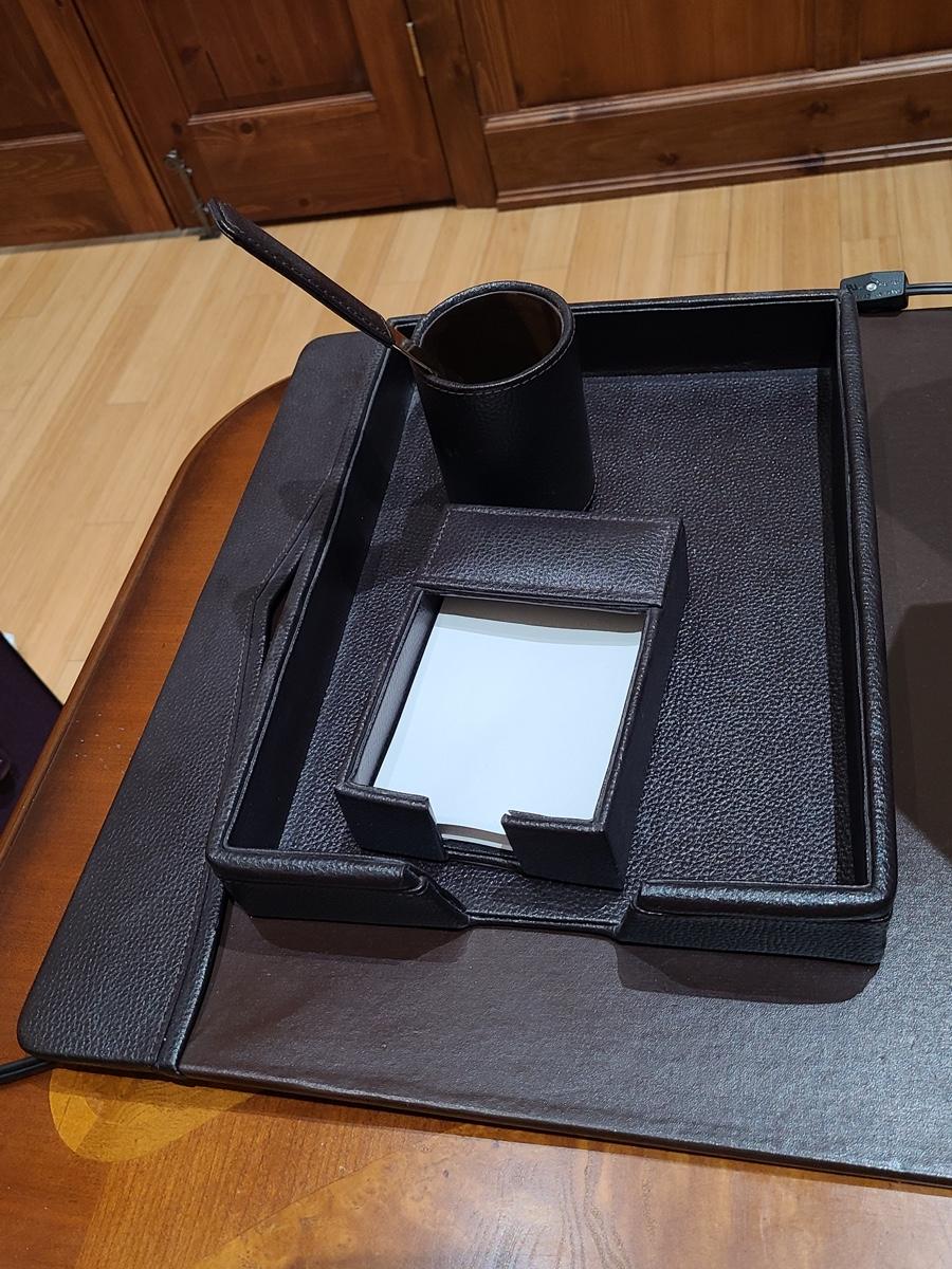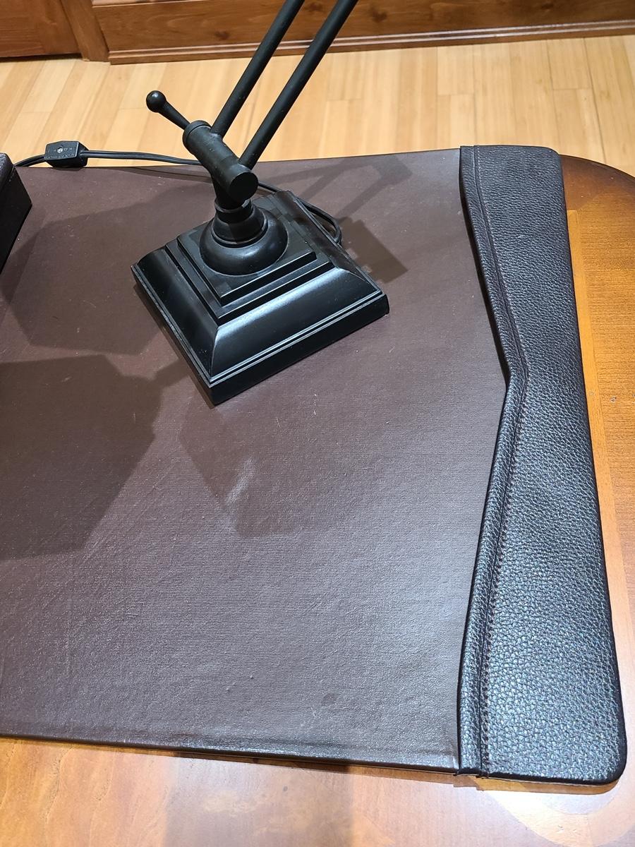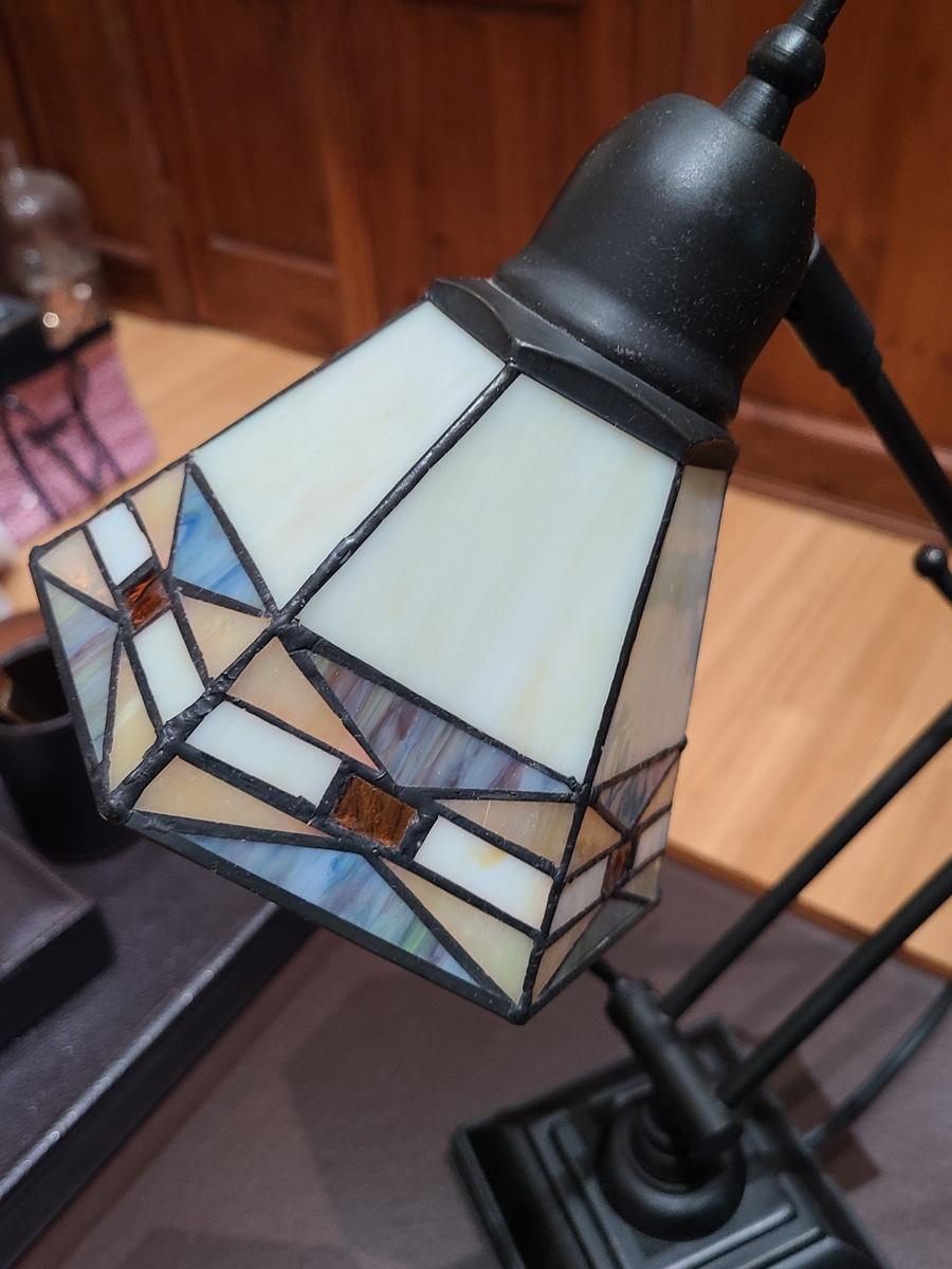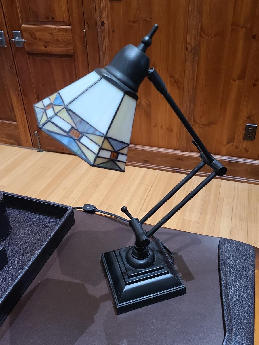 Lot 112: Leather Bey-Berk Desk Set and Stained Glass Styled Accent Lamp