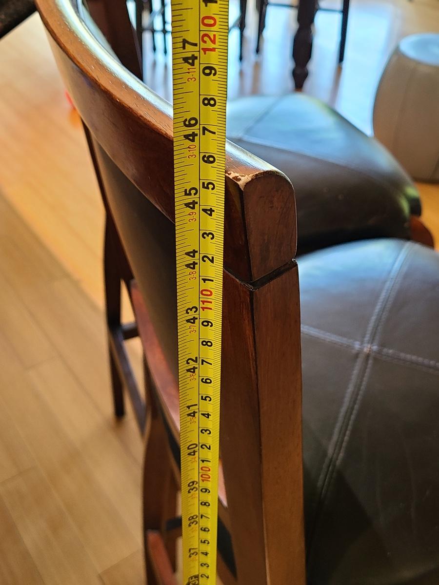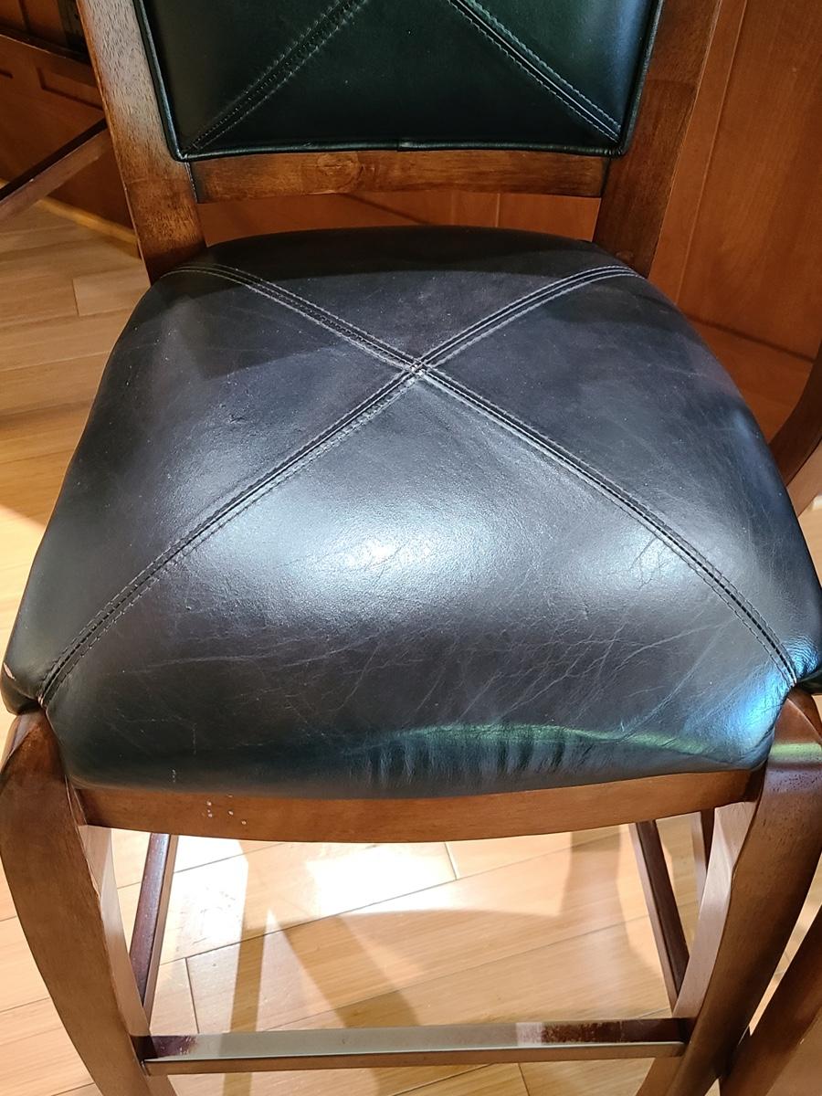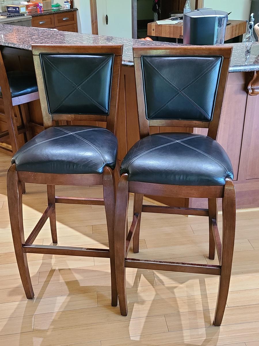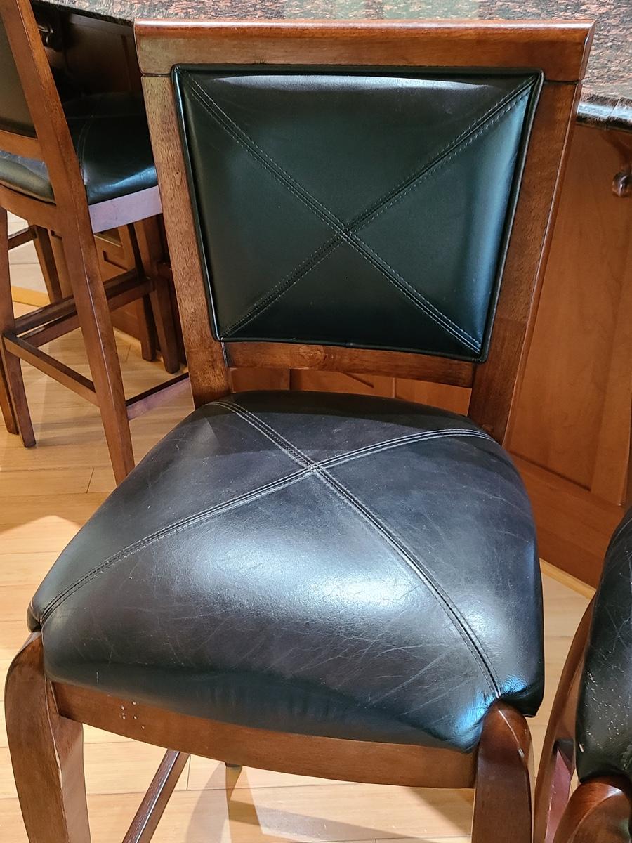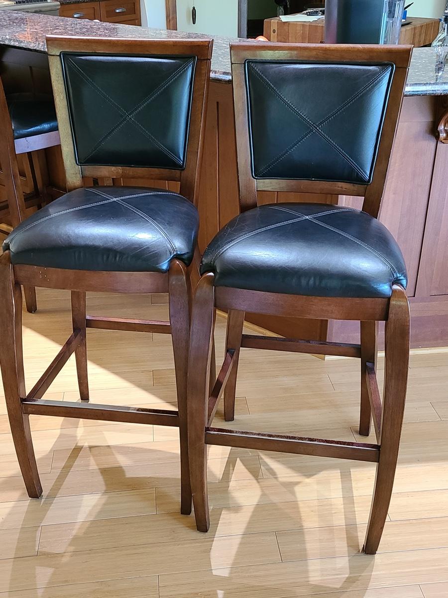 This is a very nice pre-loved set, it does show wear to the wood legs, and minor wear to the leather. Leather when used or aged has lines and surface "cracks" that give it worn in character. These are not new, but have a ton of life left, are very comfortable and ready for their next home at the kitchen counter or bar! Please see all pictures as they are the best representation of the items. The pictures show condition, measurements if taken, and what is included in the lot. Due to the large amount that we photograph and the time frame, we are not always able to take measurements. All items unless noted, are pre-owned and have been used. If you purchased furniture, you must bring help. We do not allow one person to carry large furniture out on their own. Bring help, tools and a truck for the safety of our clients homes, and your personal safety. Company policy. Thank you.