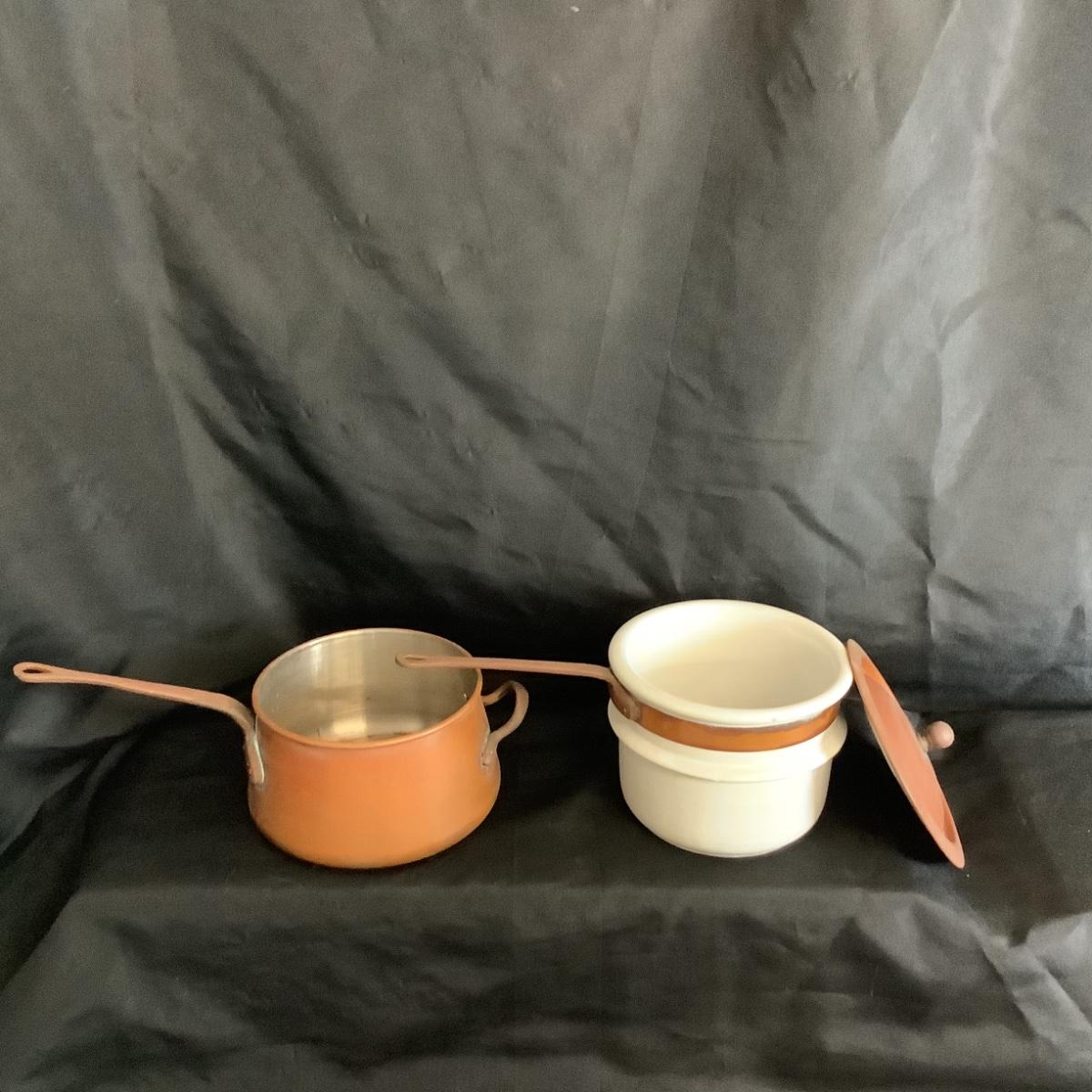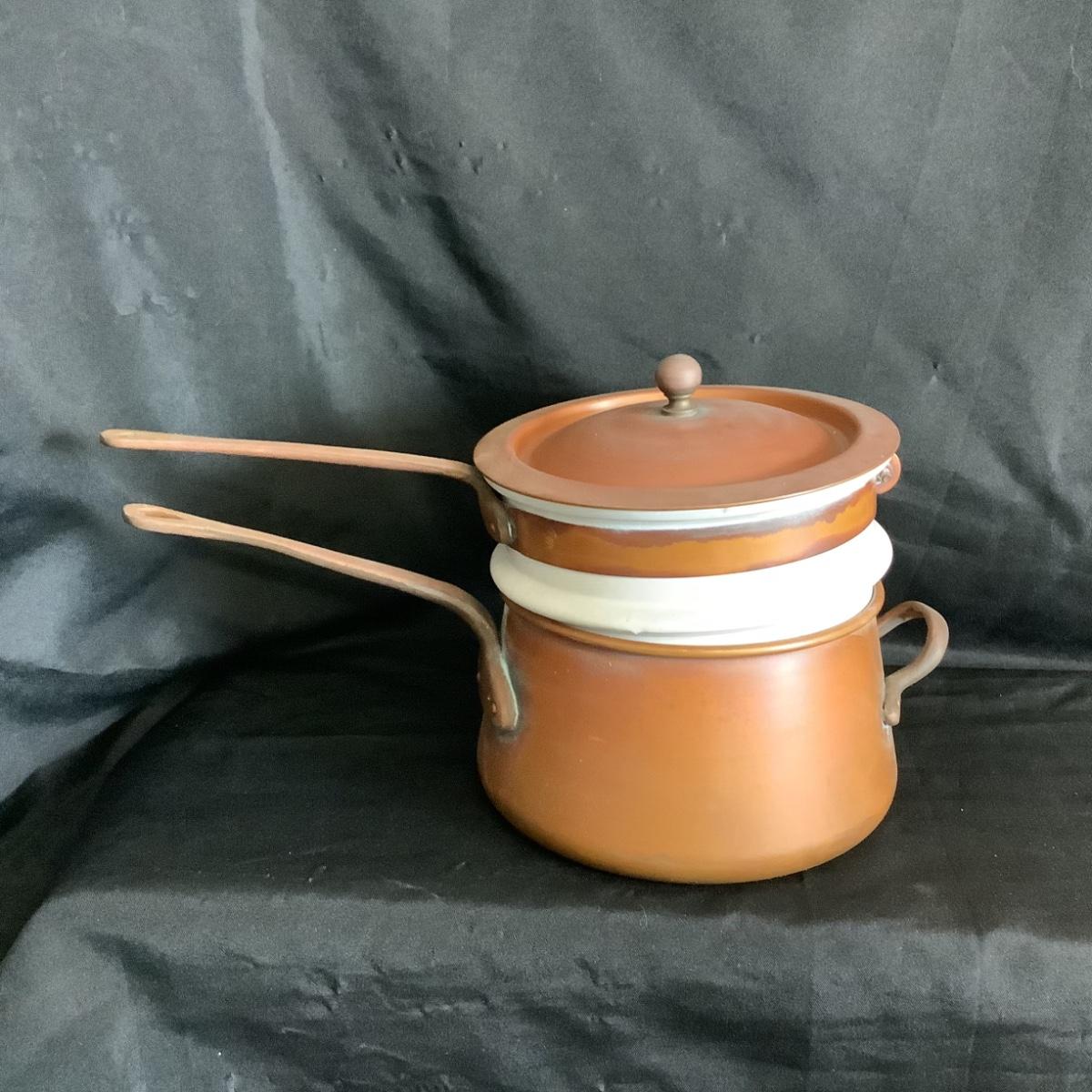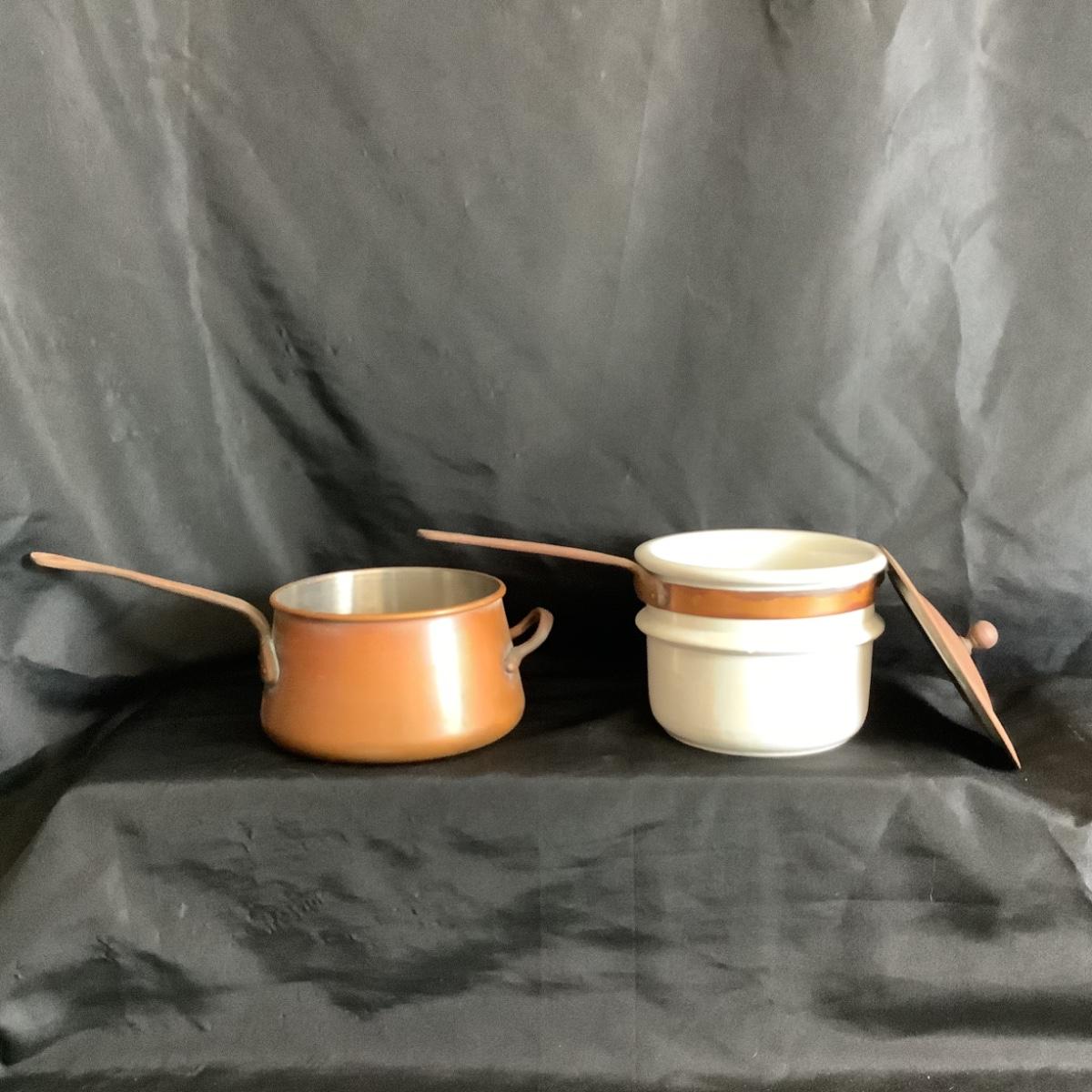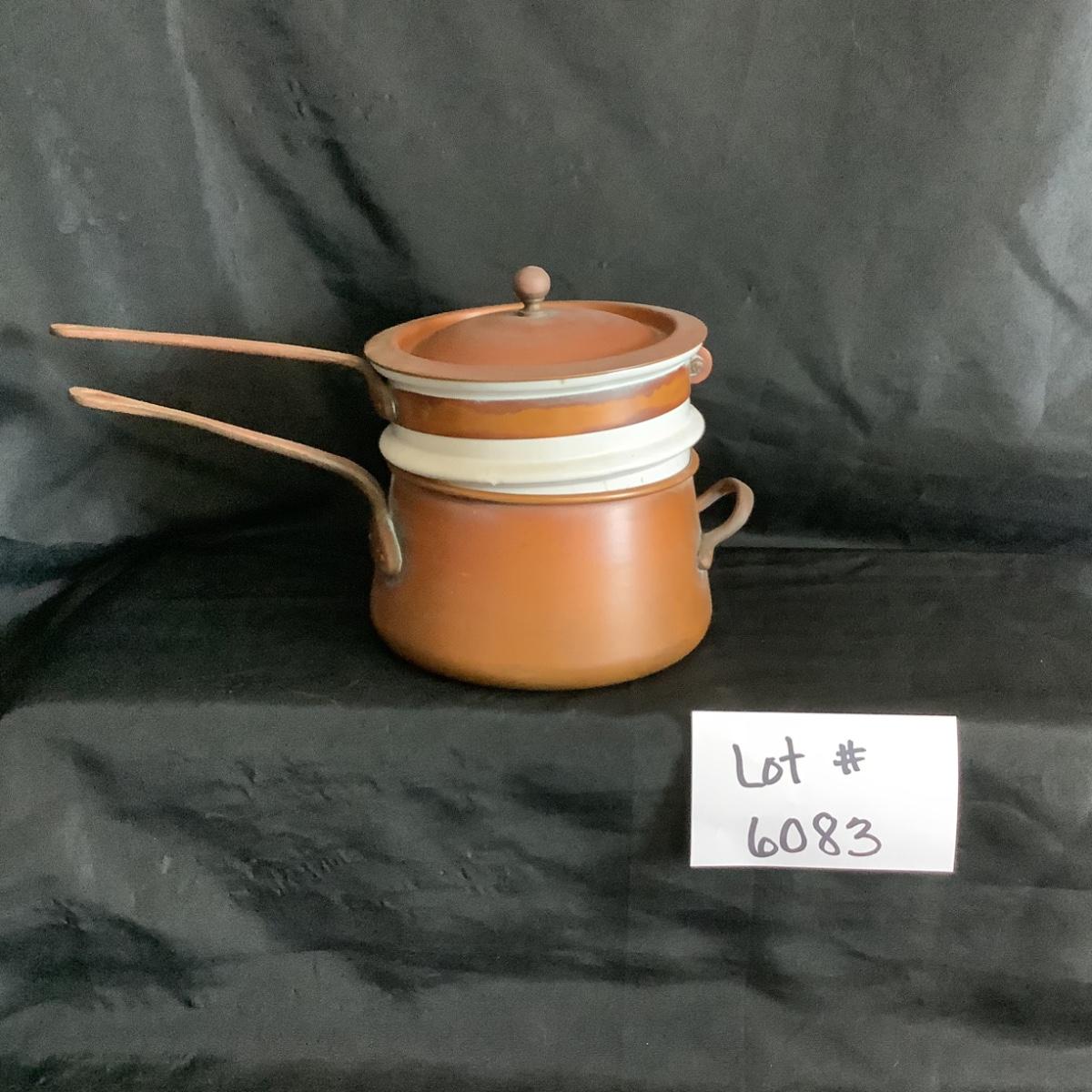 Lot 6083 Vintage B & M Douro Copper/White Ceramic Double Boiler Sauce Pan & Copper Lid