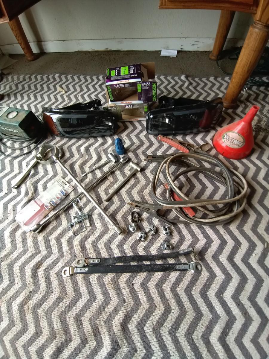 JUMPER CABLES-HEADLIGHTS-, AIRPUMP- FUNNEL AND SET OF NEW ??