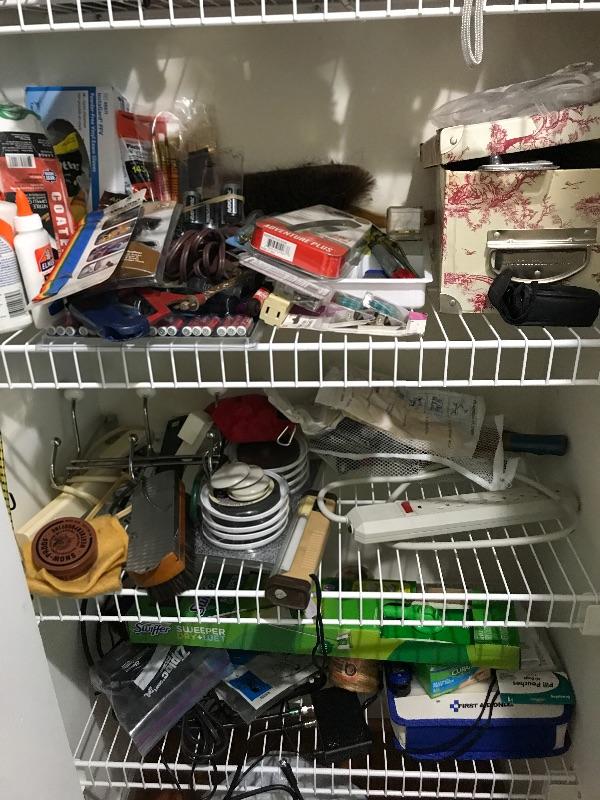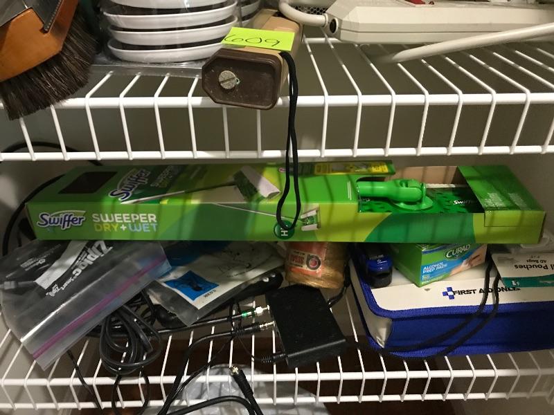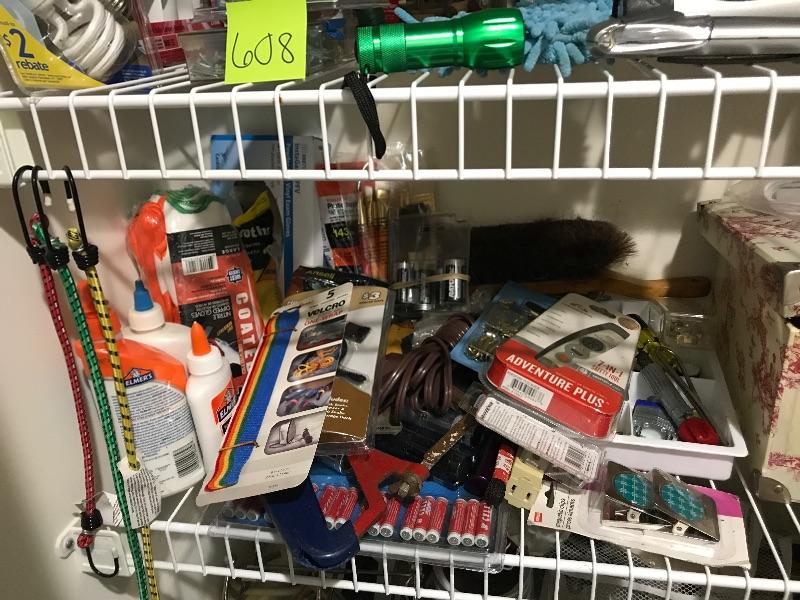 This lot includes AAA batteries Elmers glue nitro dipped gloves paint brushes rubber gloves for cleaning extension cords snake drain c batteries, Screwdrivers, hammer, furniture sliders, scrub brushes, swiffer dry and wet sweeper and much more
