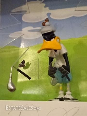 LOT 60A: DAVID KRACOV MIXED MEDIA SCULPTURE IN SHADOWBOX, LIMITED EDITION, "A RELAXING AFTERNOON" WITH DAFFY DUCK GOLFING AND THROWING GOLF CLUBS THROUGH ACRYLIC PANEL, SIGNED LOWER RIGHT AND NUMBERED AP 9/25, SIGNED ON VERSO, EXCELLENT CONDITION, FRAMED SIZE 25" X 27" X 5", SKU258.02