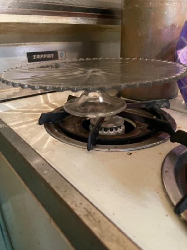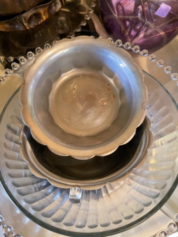 Lot 60K. Large assortment of glass kitchenware“”coasters, cruets, vases, salt/pepper, Pyrex coffee servers, candelabra, hammered copper, cake stand, Pyrex bakeware, salad bowls, canister, etc.--Was $60 - - NOW $20