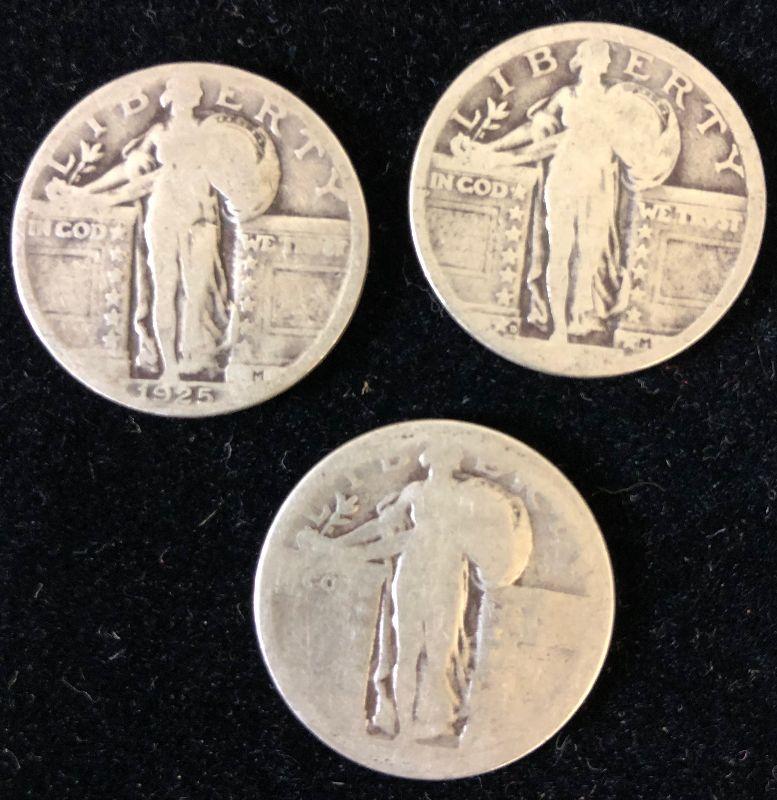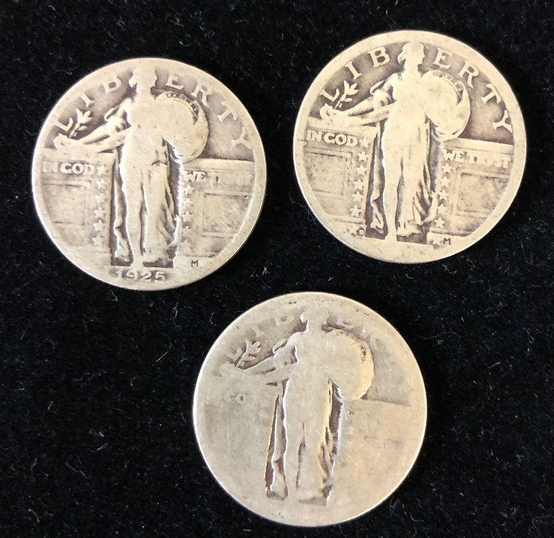Lot #61 ( 3) 1925 (1 of 3 ) 90% Silver Standing Liberty Quarters