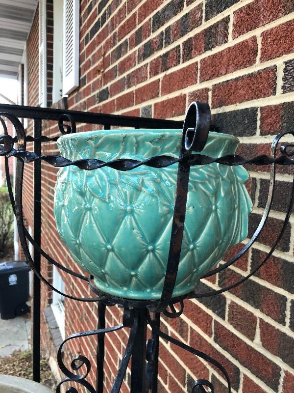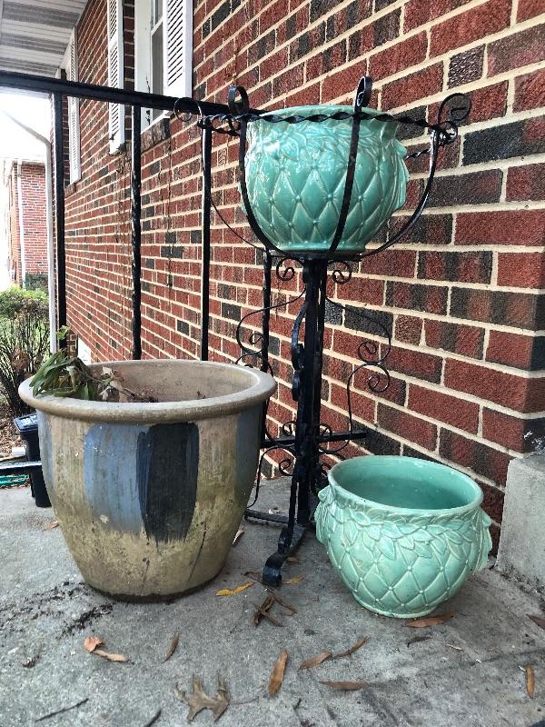 Lot 61 - 3 Planter Pots including 2 McCoy pots, Black metal stand