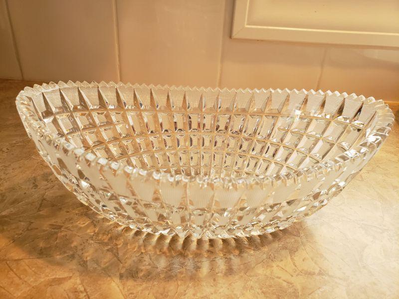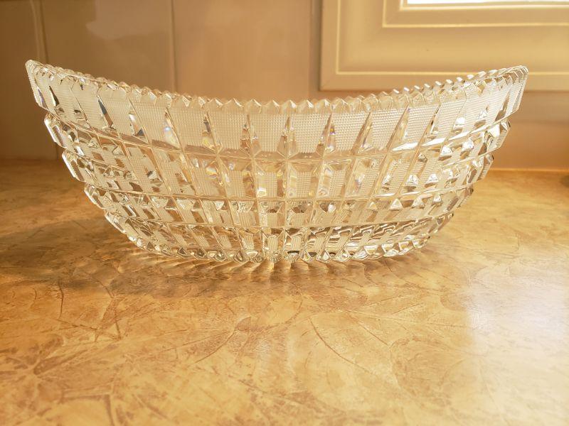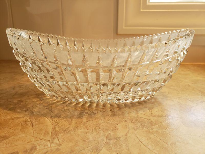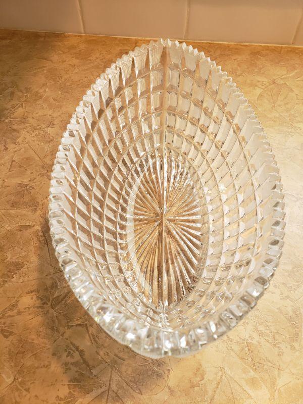 Crystal Bowl measuring 10" x 5 3/4" x 4". *** Most Importantly, have you read the terms and conditions section of this auction? Please do so BEFORE bidding because failure to review the contract does not grant you immunity from them. Please do not be upset with our company if your fail to understand the terms/conditions that you agree to by placing a bid as we are unable to offer exceptions regardless of the situation. If you bid, you agree to the terms and conditions (including most importantly the pickup dates/times). Any buyer inquiries attempting to collect their items either earlier or later than the specified times will be simply sent a screenshot of the publicly advertised period for collection that they agreed to by placing a bid. No exceptions will be made, for any buyer, for any reason, even family emergencies or acts of God, in regards to pickup dates/times. ALSO, if you win a single auction or multiple, please wait until the entire auction is complete (not just your item) for the invoices to be sent. We urge ALL buyers to check their EstateSales.org Message Box, not your personal email like Gmail or Yahoo, for that invoice. Failure to review your EstateSales.org inbox for the Invoice (which will contain the hidden address and confirmation of pickup dates/times) is not an excuse for missing the pickup dates and times as they are public since the start of any auction. If for some reason you are unable to access your invoice with the address, it is your responsibility to contact Ms. Museum Estate Sales PRIOR to the pickup day to confirm the location. Any buyer who fails to collect their item during the specified dates/times will NOT receive their money back, the item(s) or any other form of compensation due to the terms that you agree to when bidding. Best of Luck!