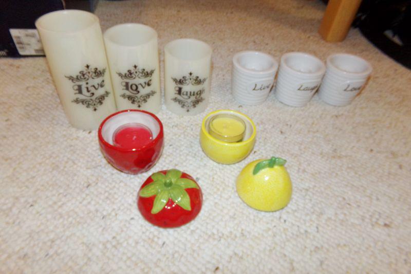 VOTIVES IN CERAMIC FRUIT AND BATTERY OPERATED CANDLES