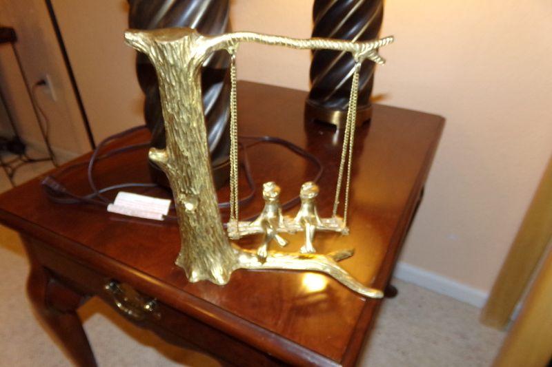 LOT 61  CANDLES & BRASS FROGS ON A TREE SWING