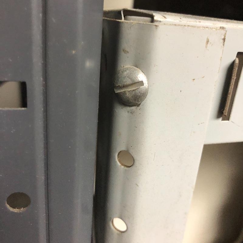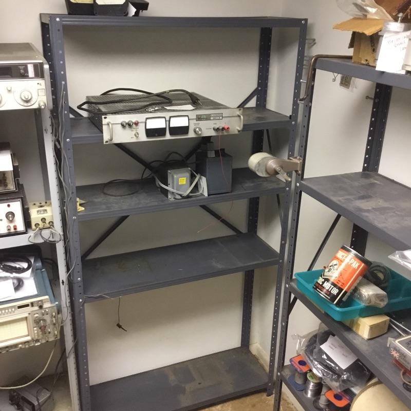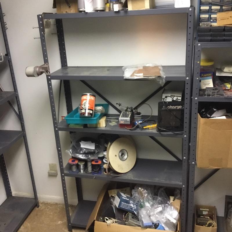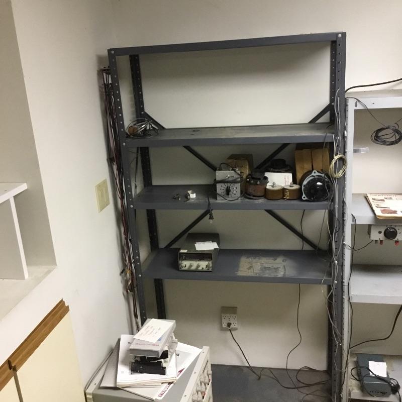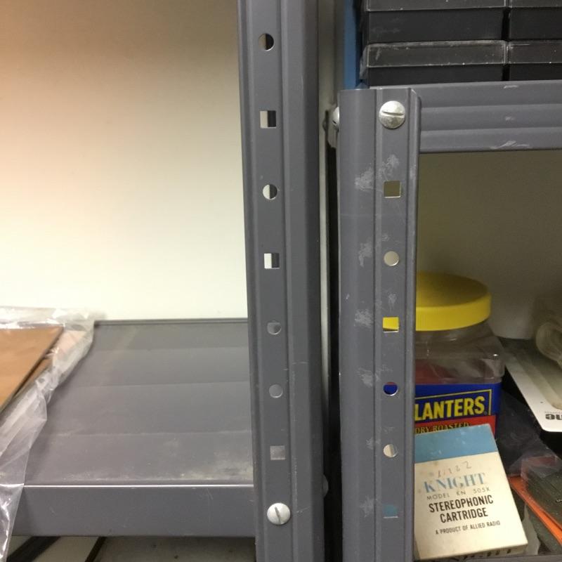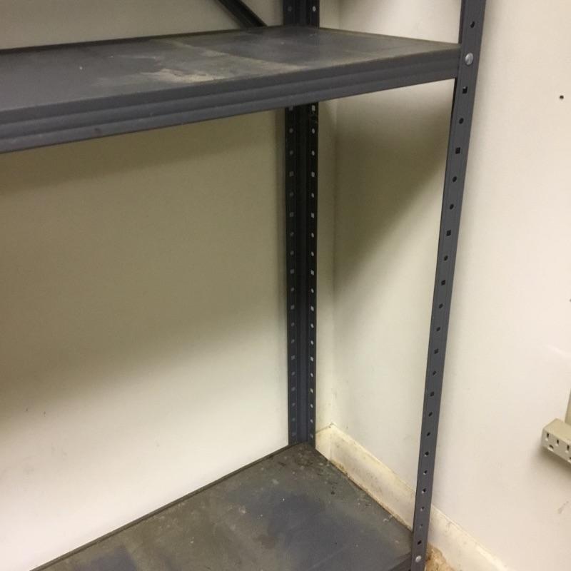 Lot includes five metal shelves. Shelf one measures 35.5x11.5x68. Shelf two measures 29.5x11.5x58.5. Shelf three measures 35.5x11.5x68. Shelf four measures 35.5x11.5x64.5. Shelf five measures 29.5x11.5x57. See photos. Items on shelves not included. Pencil sharpener will be the only thing left attached to these metal shelves. Shelves can be taken apart, but it looks like a tedious job, bring your power screwdriver. Due to items being on the shelves for sale storage, please plan to pick up at the end of the day on auction pick up day on Friday or on Monday, May 3rd. Please contact us if you win this item.