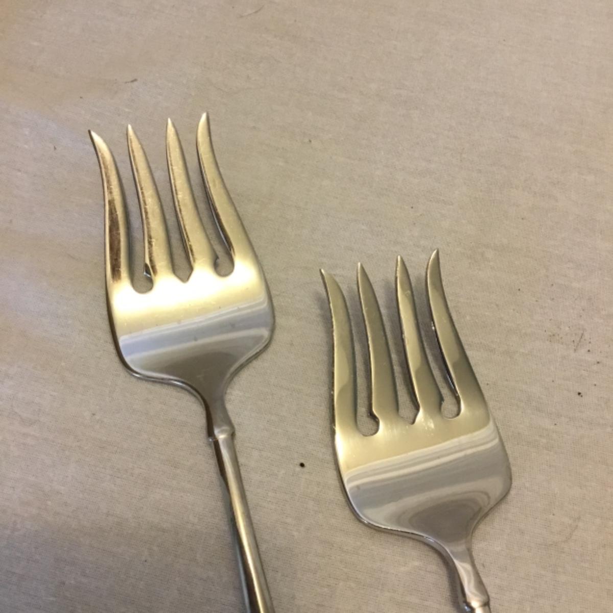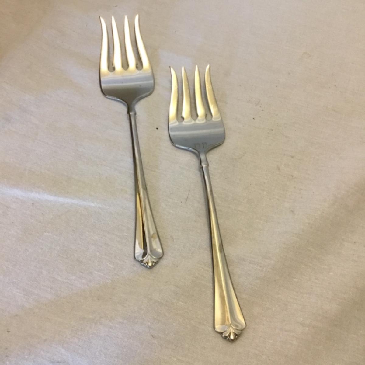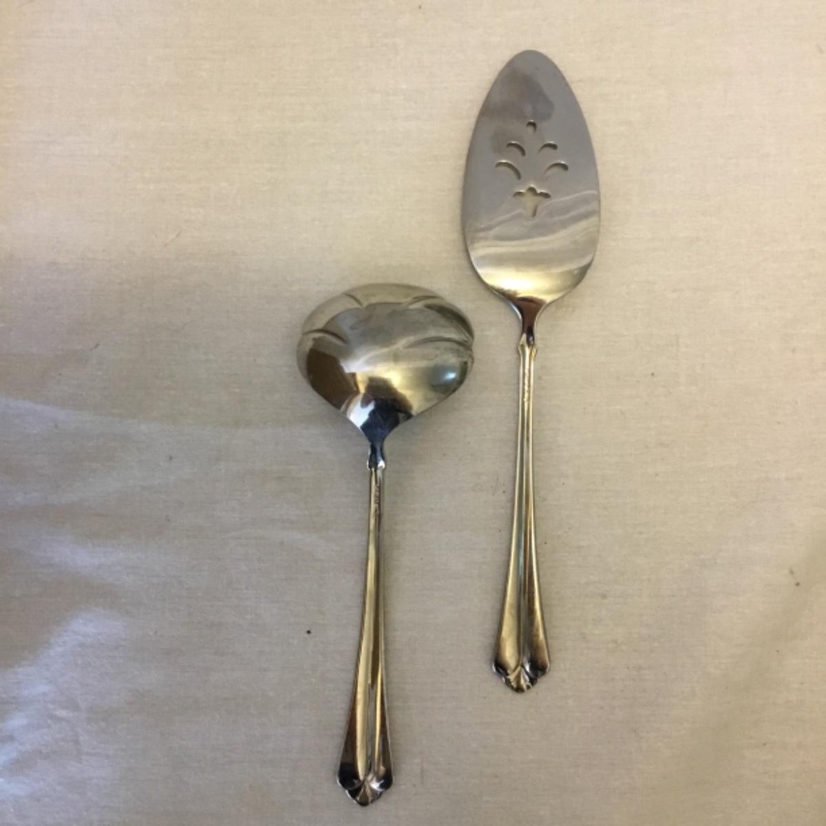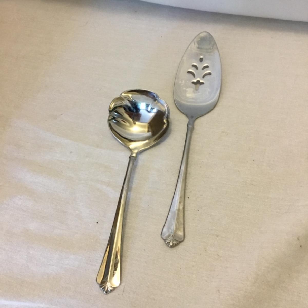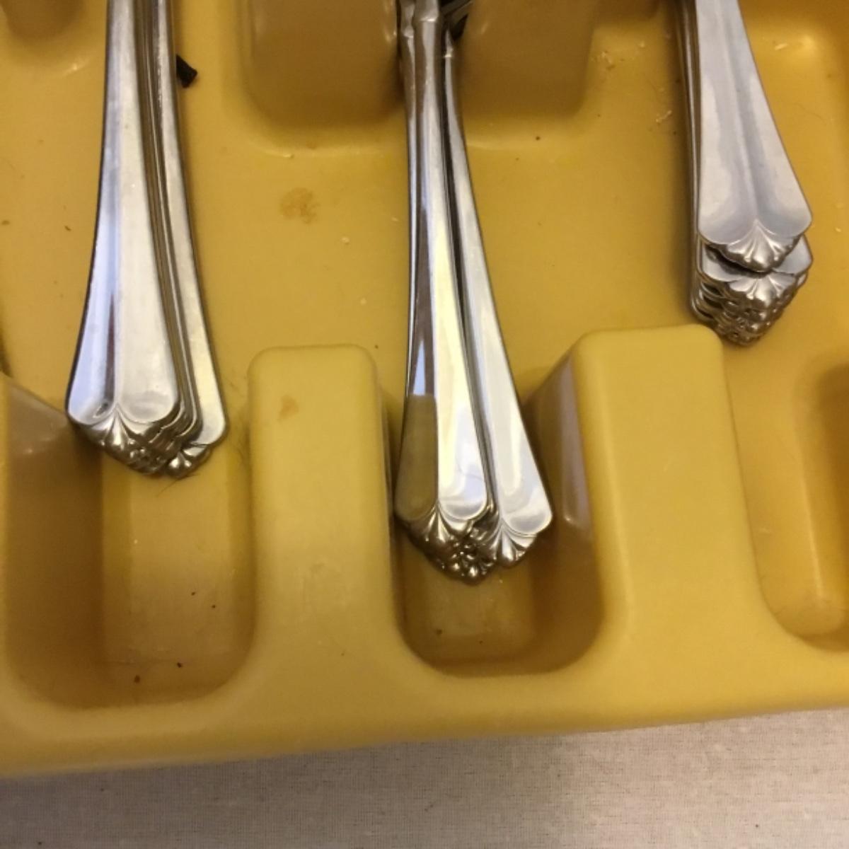 Lot includes a pair of silverware sets in their own organizers. Lot includes traditional everyday use utensils along with a few serving utensils. All the silverware has consistent similar design and all Oneida silverware. See photos for close-up details. Local pickup only.