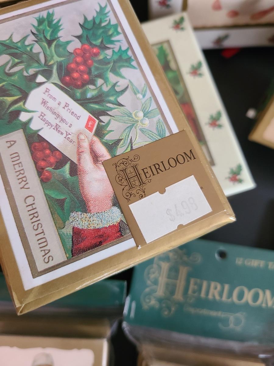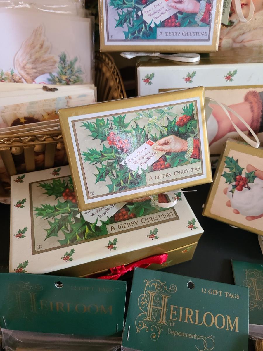 Lot 61: Dept 56: Heirloom Cards, Tin Trays, Gift Bags and More