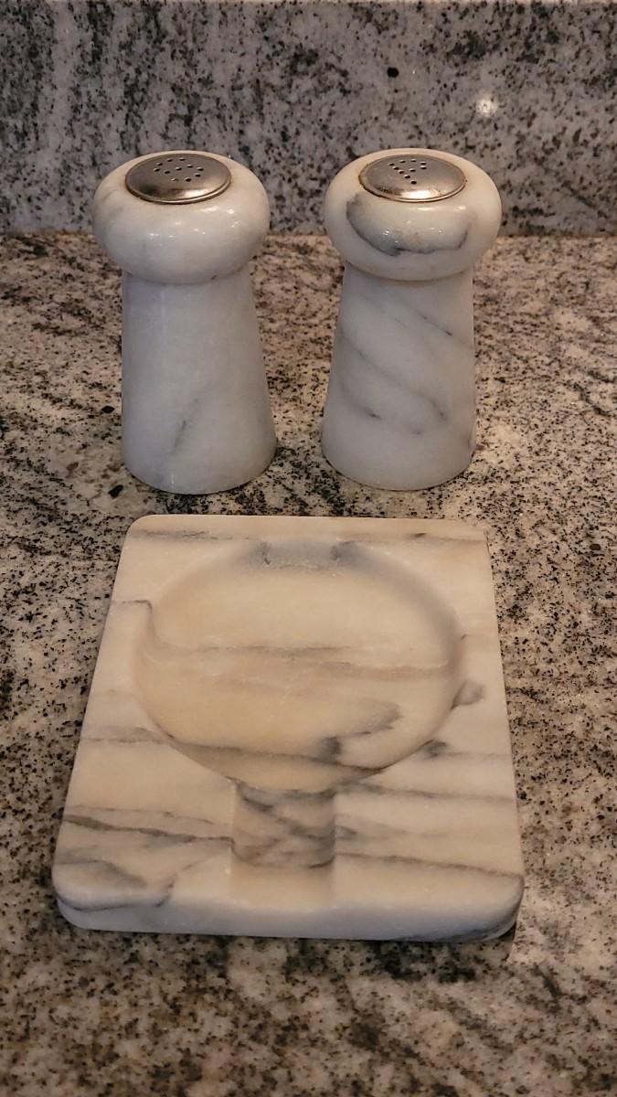 Lot 61: Marble Salt & Pepper Shakers and Spoon Rest